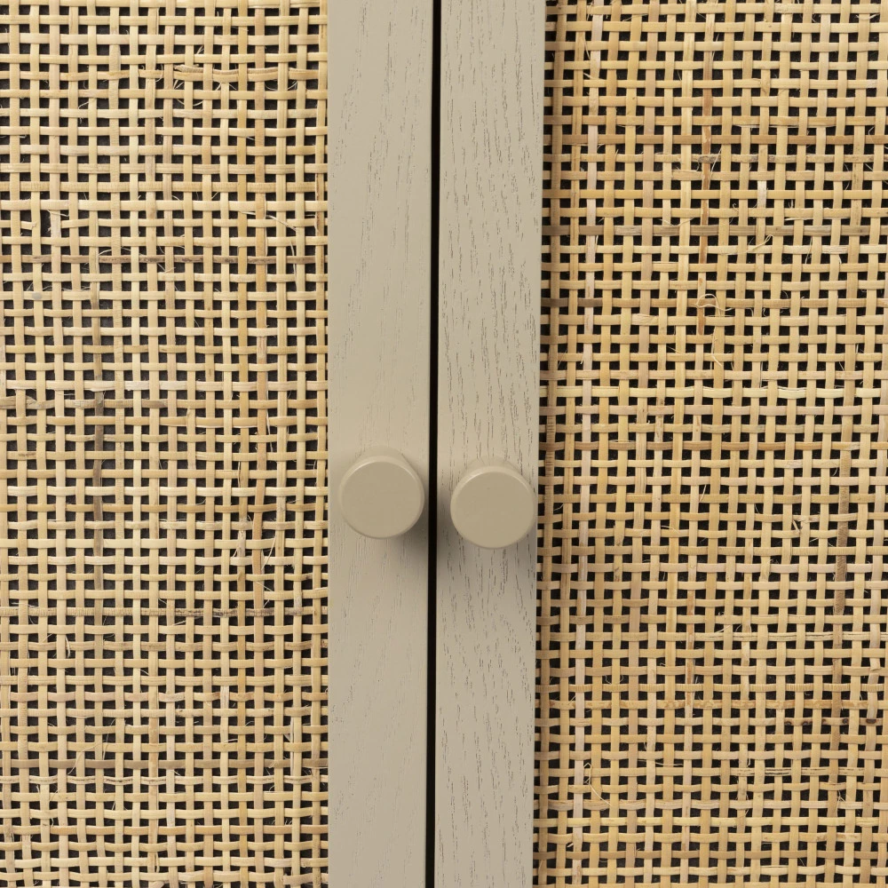 Bords arrondis pour plus de douceur, façades en rotin pour la touche bohème rétro et pieds plutôt fins pour des volumes harmonieux, voilà ce qui nous plaît dans le design de ce meuble TV confectionné en MDF et acier. Ce modèle de 55 x 150 x 38 cm est également bien agencé, avec une niche de rangement dotée d’une ouverture passe-câbles, 2 tiroirs de tailles différentes en partie droite, et des espaces de rangement en partie gauche dissimulés par 2 portes. Vous avez donc là tout ce qu’il faut pour ranger votre matériel technique, des documents, etc.