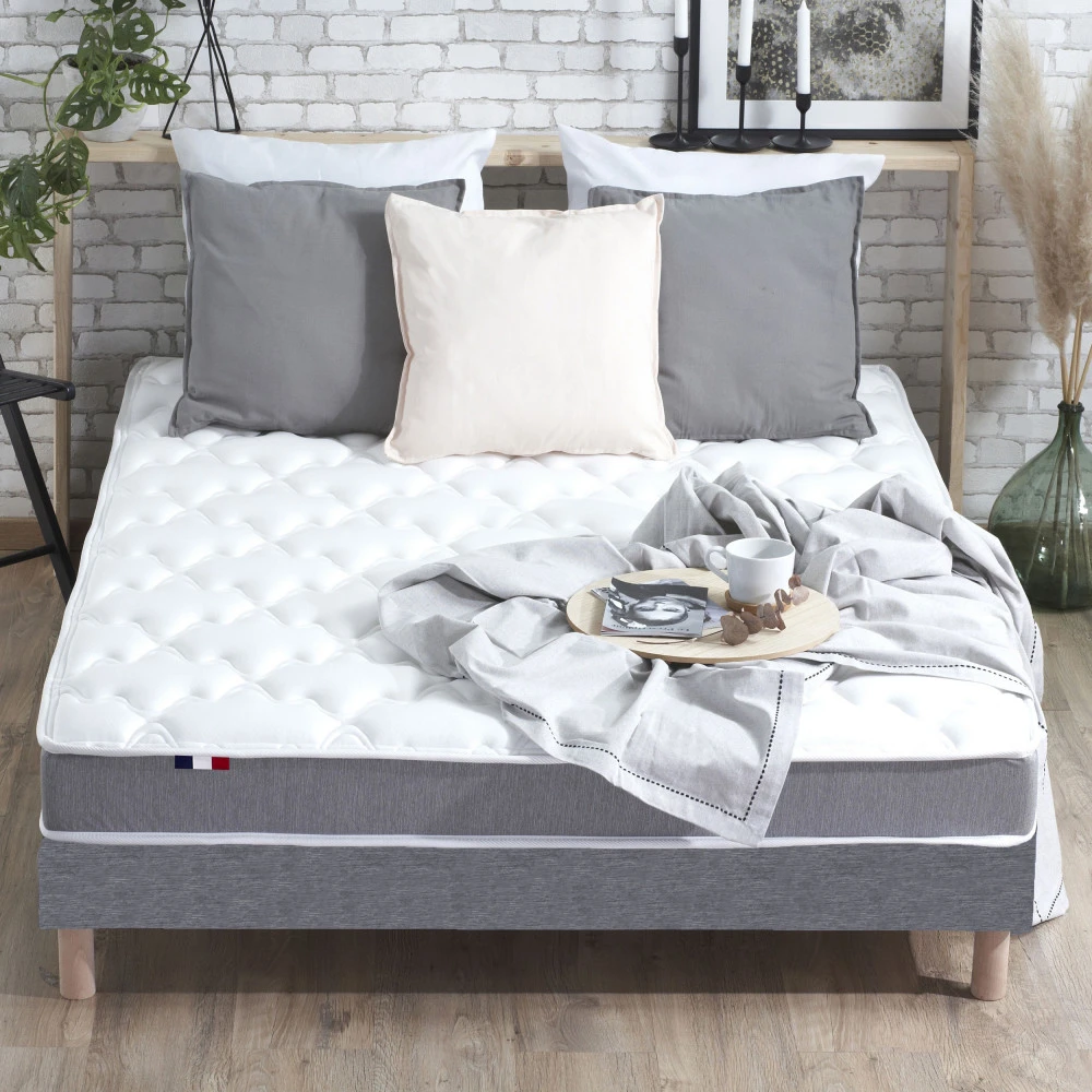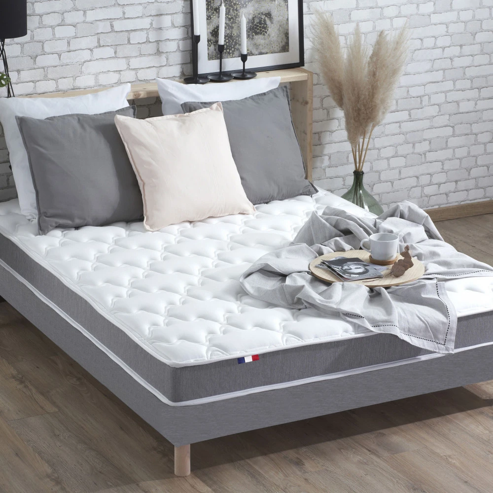 La mousse à mémoire de forme est un choix de luxe pour ceux qui recherchent un matelas délassant, qui épouse parfaitement toutes les zones du corps. Quant à la mousse polyuréthane, sa fermeté et son confort sont des arguments de poids. Un garnissage en ouate hypoallergénique complète ce matelas biconfort.