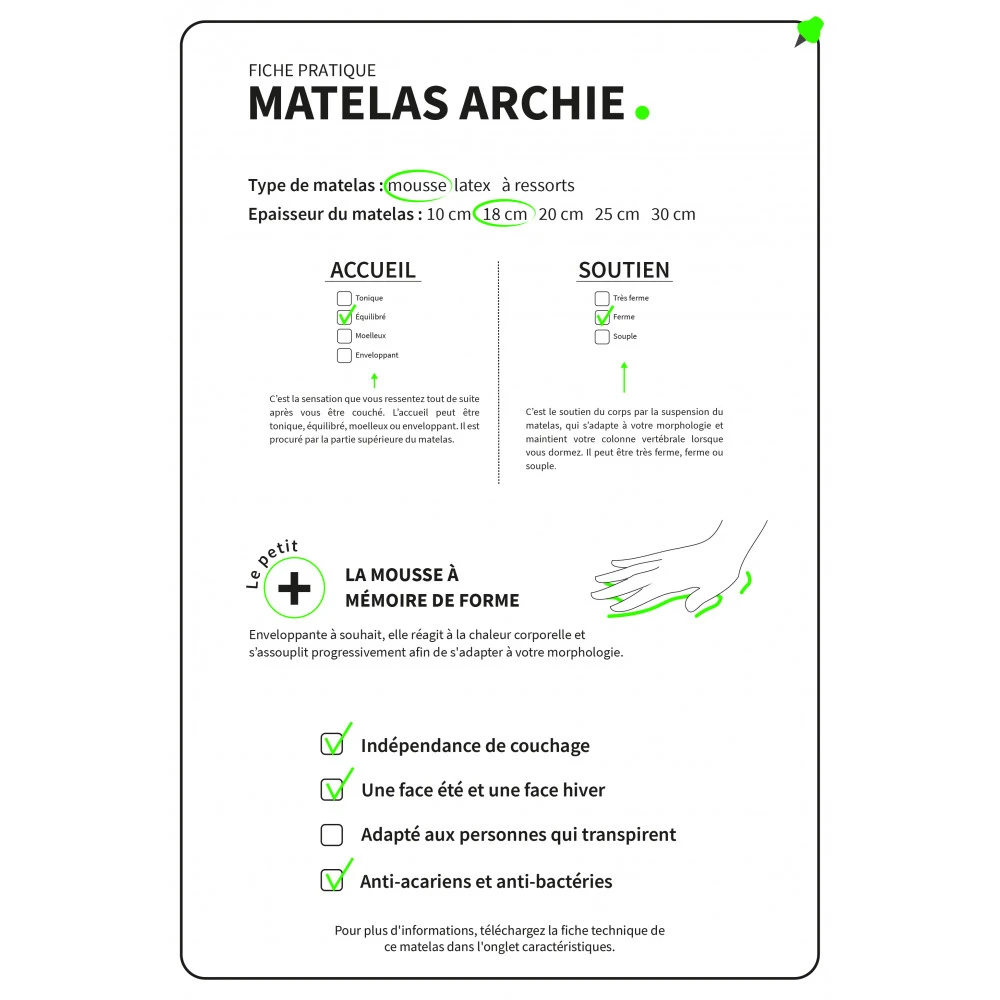 Le matelas Archie est garanti 5 ans et est fabriqué en France. Retour possible sous 14 jours.