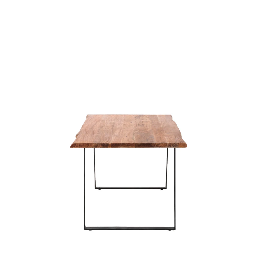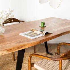 La table à manger en bois et métal 160×90 cm Asèle s’apprête à faire rentrer le live edge dans votre intérieur. Si vous n’en avez jamais entendu parler auparavant, petit cours de rattrapage : il s’agit d’une découpe du bois qui respecte la forme naturelle de l’arbre et offre par conséquent un rendu très authentique. Chez Drawer, on en est tout simplement fan ; ça change de ce que l’on peut voir un peu partout !