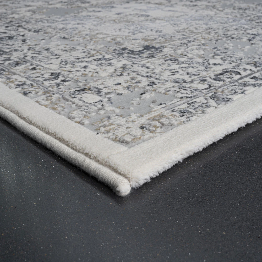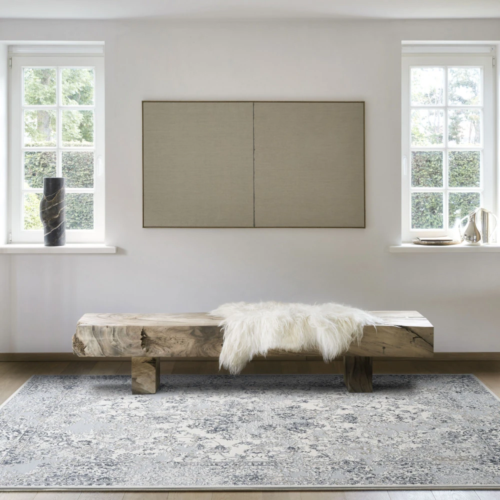 Ce tapis à poils ras de forme rectangle classique se pare d’un magnifique motif vintage, légèrement en relief, dans un coloris gris aux nuances bleutées. Joli, n’est-ce pas ? Outre son motif et sa teinte, on apprécie aussi la brillance subtile qu’il offre, qui apporte de la lumière.