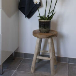 Si le style pur et authentique du bois brut vous fait craquer, le tabouret Badia devrait vite faire partie de vos essentiels à la maison ! Semblant directement taillé dans l’arbre et même issu de branches entières, il fait honneur à la nature brute si belle du bois de teck, laissant apparaître ses aspérités et ses veinures naturelles. Son style naturel pourra s’intégrer dans une ambiance bohème ou atelier. Un véritable objet qui se suffit presque à lui-même, malgré ses fonctions de tabouret. Il ne vous servira donc pas seulement d’assise d’appoint, mais aussi et surtout d’objet de décoration. Ainsi vous pourrez le détourner en sellette pour vos plantes, en petite table pour y poser une lampe, en bout de canapé ou encore en table de nuit. Badia est donc constitué de quatre pieds solidement reliés entre eux, surmonté d’un plateau en teck brut aux reliefs variant en fonction des modèles : vous y trouverez ainsi les aspérités propres à chaque modèle. Un objet unique en toute simplicité, qui occupera pourtant des fonctions multiples.
