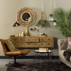 Ce beau fauteuil apportera une atmosphère très chaleureuse à votre pièce à vivre. Le cuir de son siège conviendra aux décorations vintage, récup’ ou industrielle. Il pourra être associé à des meubles du même style ou alors des meubles en bois, épurés et simples.