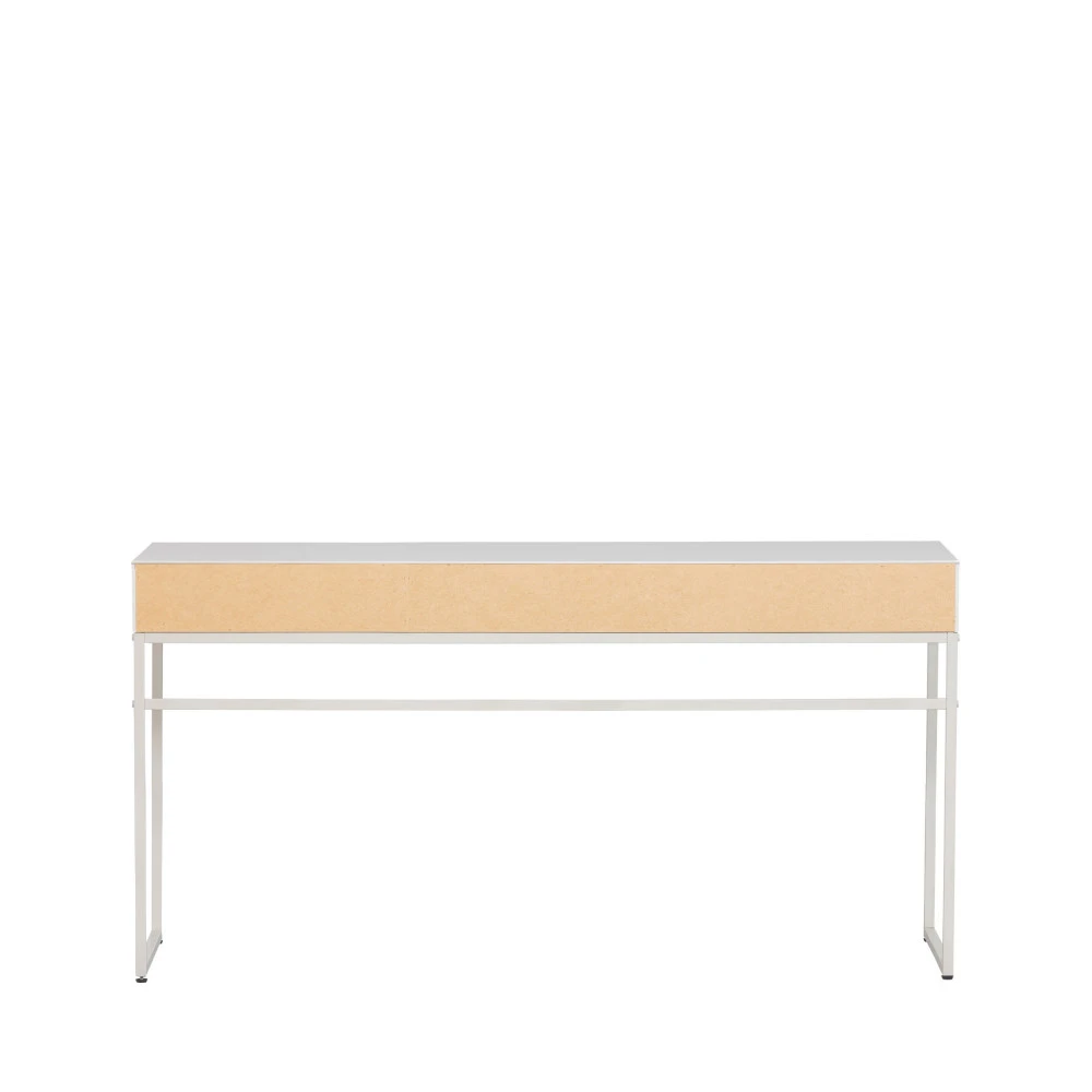 Il est confectionné en bois massif de pin, avec des pieds en métal, et mesure 150 cm de large, 76 cm de hauteur et 50 cm de profondeur. De forme rectangulaire classique, il se dote de 2 tiroirs : l’un fait 44 cm de large et le second mesure 94 cm. Haut de 61 cm, le piètement tout en finesse de ce modèle permet au bureau de ne pas paraître massif, ce qui est appréciable quand il trône dans la pièce de vie.
