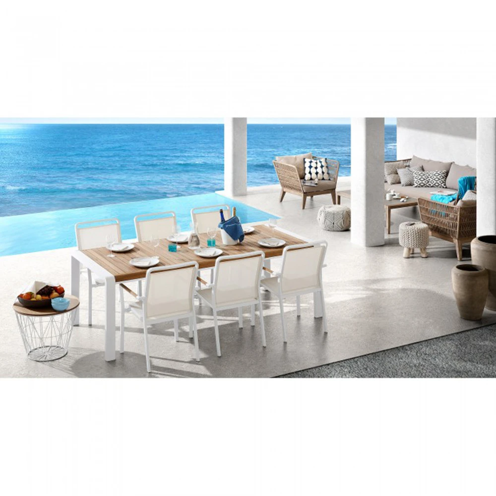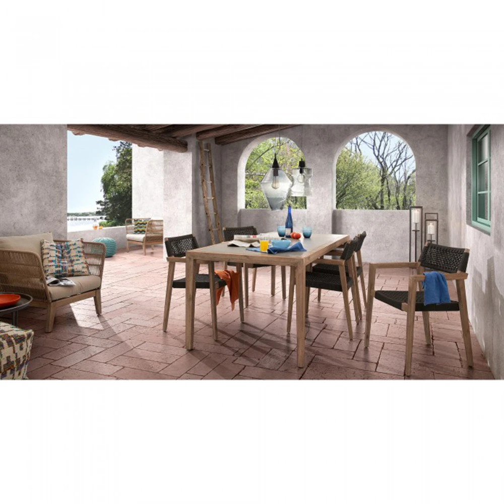 Composition : piètement en bois d’acacia massif, coussins avec mousse, dossier et accoudoirs en corde de polyester