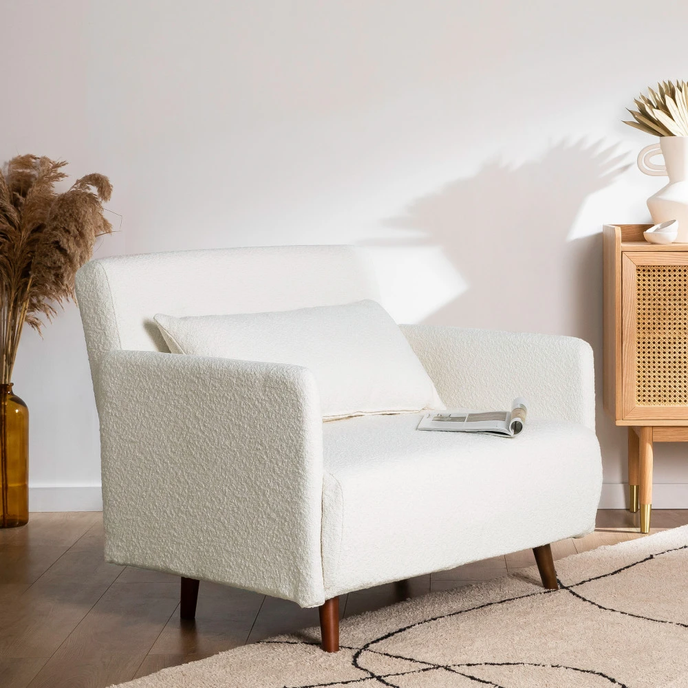 Vous recherchez un fauteuil convertible à la fois abordable et confortable, et qui ne fasse pas tache dans votre déco ? Jackpot ! Le fauteuil convertible en tissu bouclette Belushi débarque dans votre intérieur pour répondre à toutes vos attentes.
