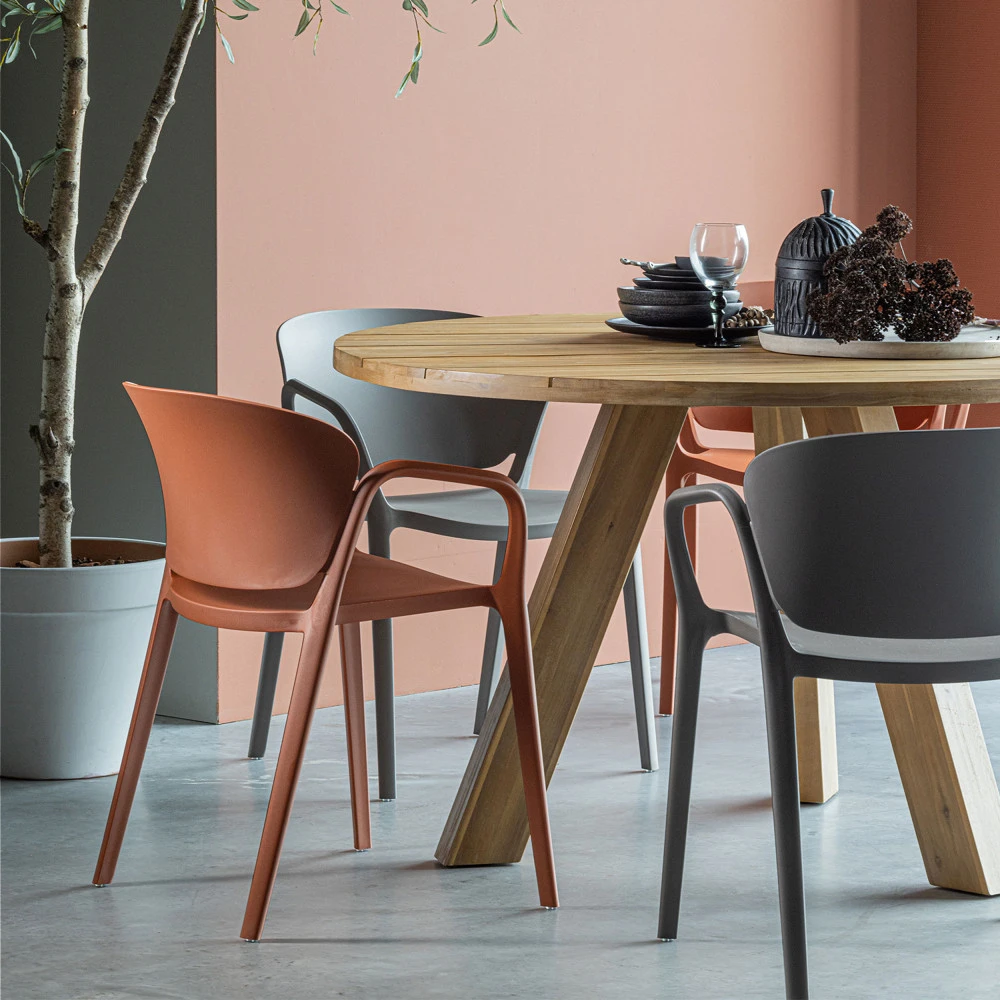 Les concepteurs de Bent ont pensé à tout en proposant deux couleurs très tendance pour ces assises outdoor : un gris facile à accorder avec les tables de jardin en bois et un terracotta à la pointe des tendances actuelles, qui se marie aisément avec le mobilier outdoor en résine.
