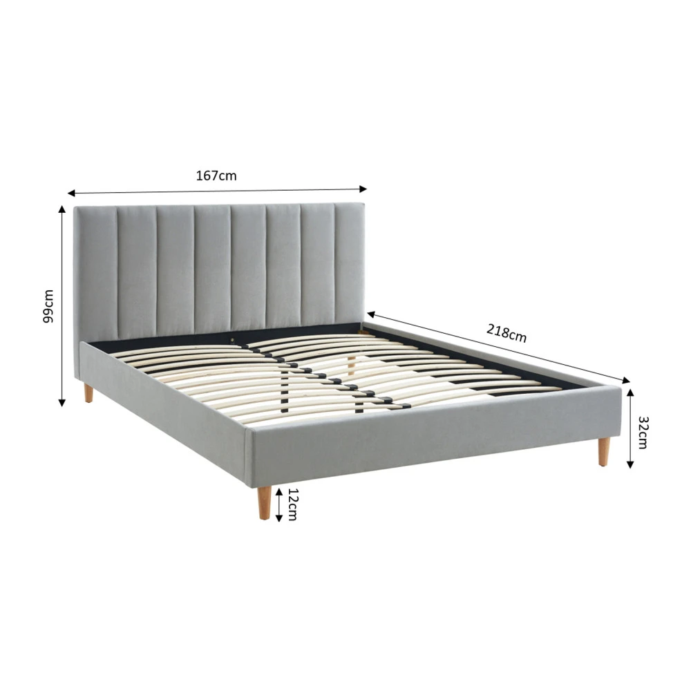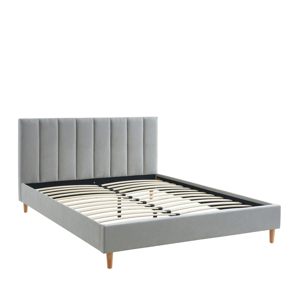 Vendu sans matelas, mais doté d’un sommier à 26 lattes, ce lit fait 160 x 200 cm, de quoi avoir tout le confort nécessaire à 2. Il est fabriqué en contreplaqué et tissu et se dote de pieds en bois massif qui permettent au modèle ne pas alourdir l’espace.