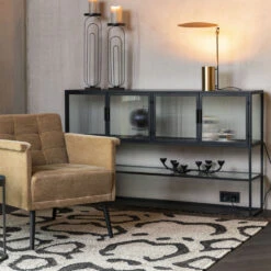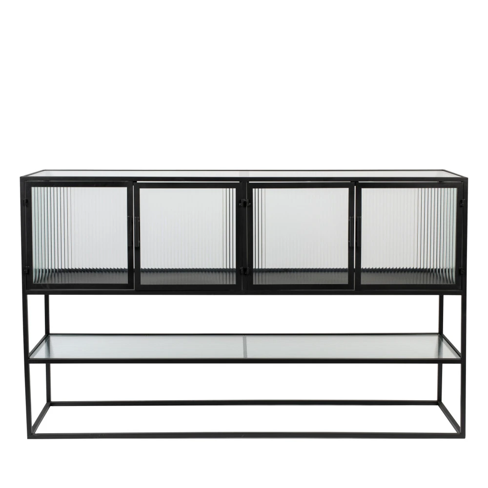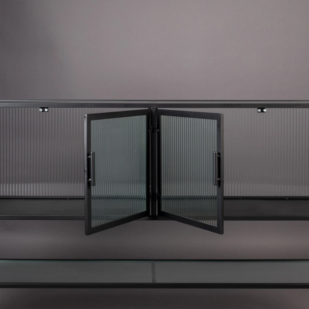 Démarquez-vous avec le buffet enfilade Boli : il joue avec finesse entre le verre trempé rainuré et le métal noir. Ses matériaux lui permettent donc de s’affirmer dans un intérieur contemporain aux légères notes industrielles. Ce buffet au design épuré semble plus léger que nature, et sera l’écrin parfait de votre belle vaisselle ou de tous les objets dont vous avez envie de prendre soin.