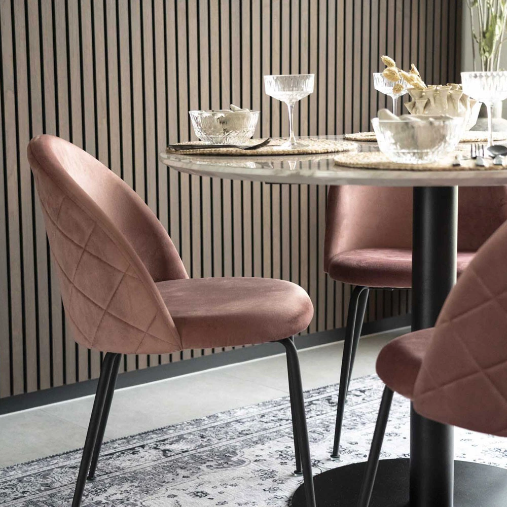 Vous pourrez installer autour de la table Bolzano des chaises en velours, pour un rendu chic et cosy, ou bien des chaises en métal pour une déco simple et indémodable. Finalisez ensuite l’aménagement de votre espace repas avec un buffet pratique, une console et des étagères.
