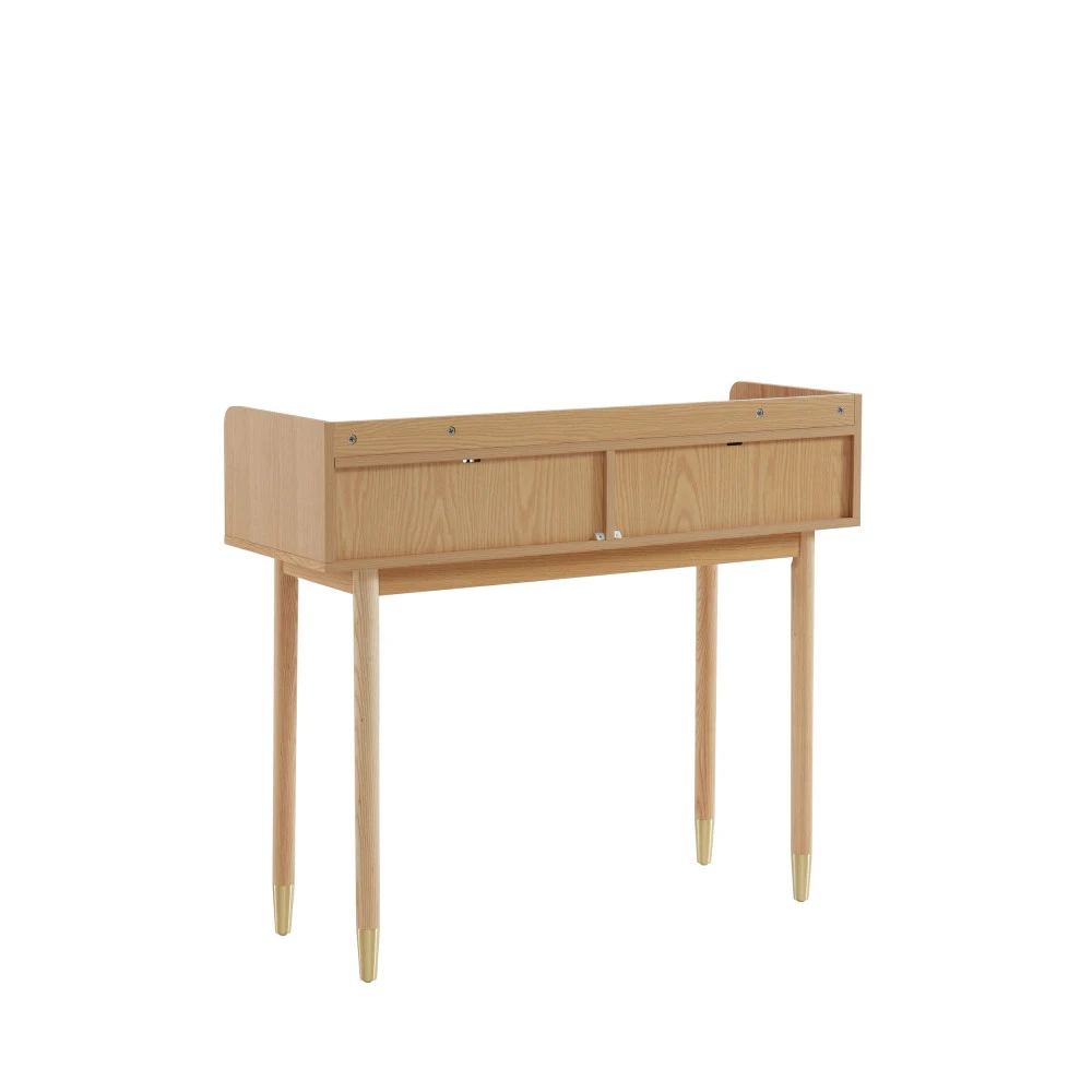 Difficile de ne pas succomber au charme de cette console. Tendance, Bombong associe la chaleur du bois à l’exotisme du cannage. Sa forme simple est réhaussée de 4 pieds fuselés avec des extrémités en laiton : ce qui apporte une touche chic à l’ensemble ! Bombong comprend 2 tiroirs de rangement ornés de cannage pour y ranger les petits objets du quotidien. De couleur naturelle, ce meuble affiche un style à la fois raffiné et authentique.