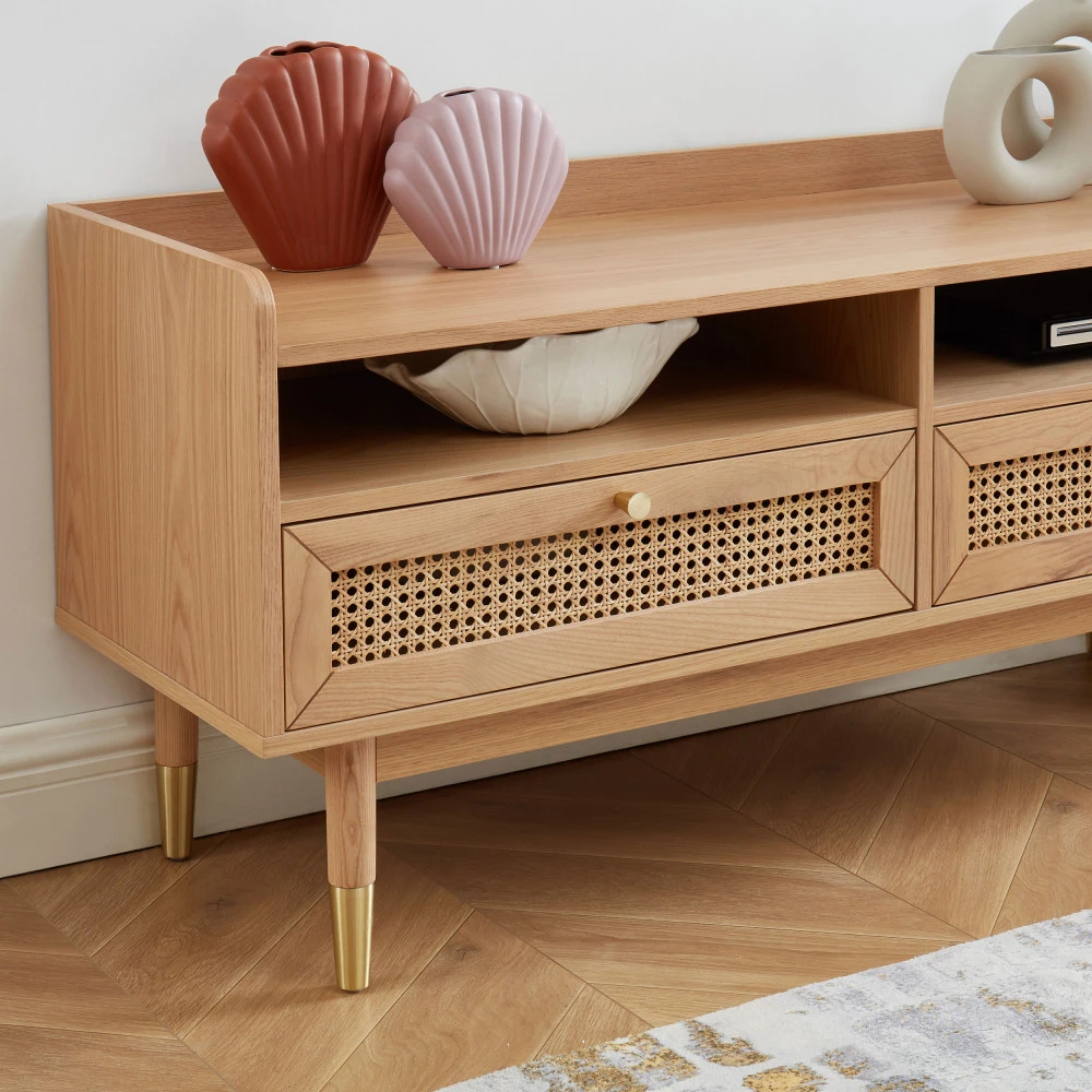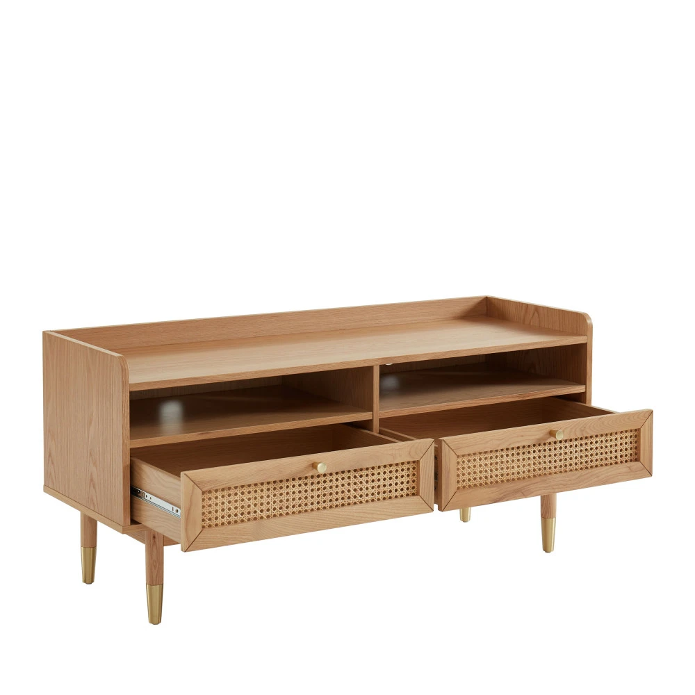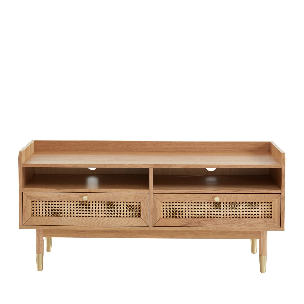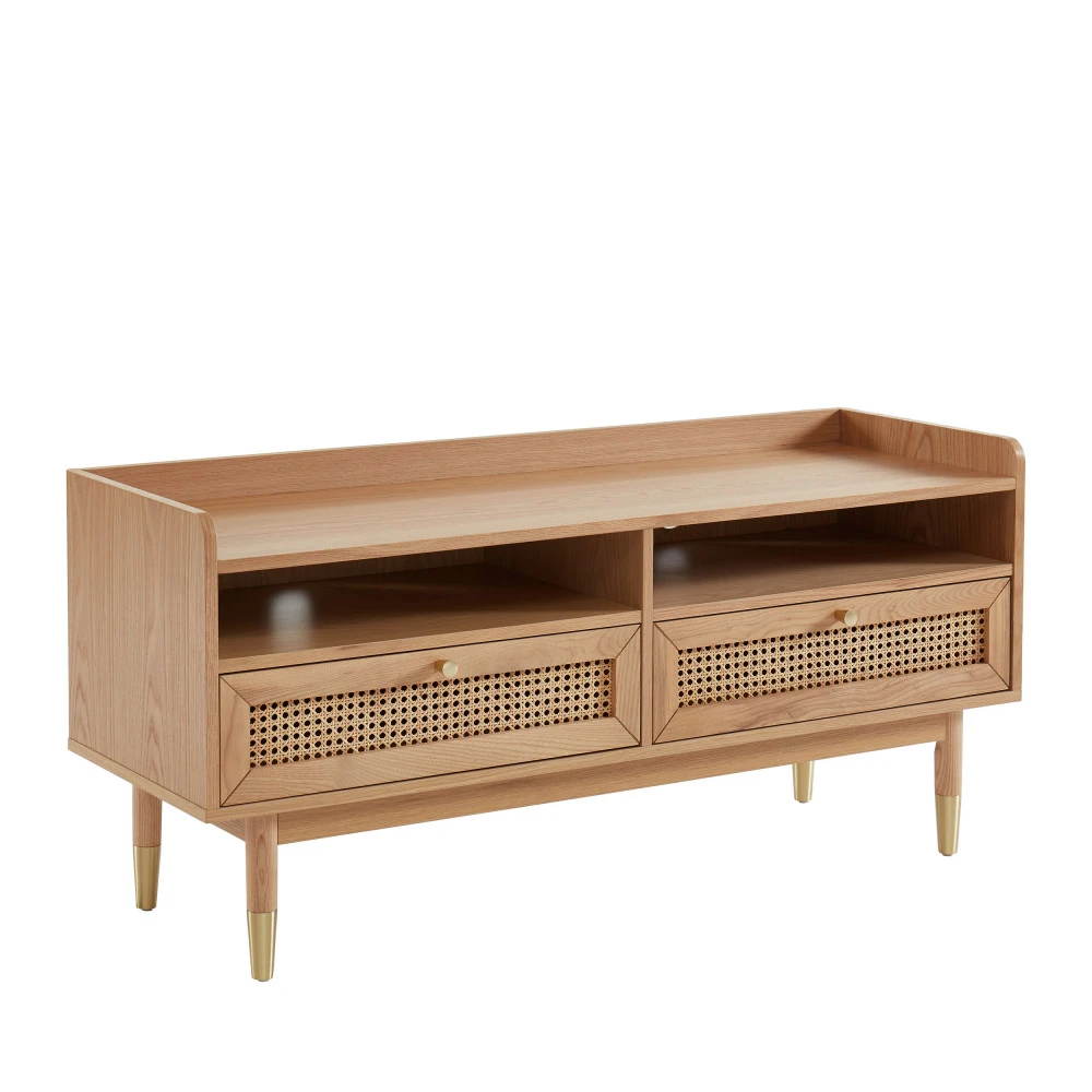 BOMBONG Meuble TV 2 Tiroirs En Bois Et Cannage L120cm