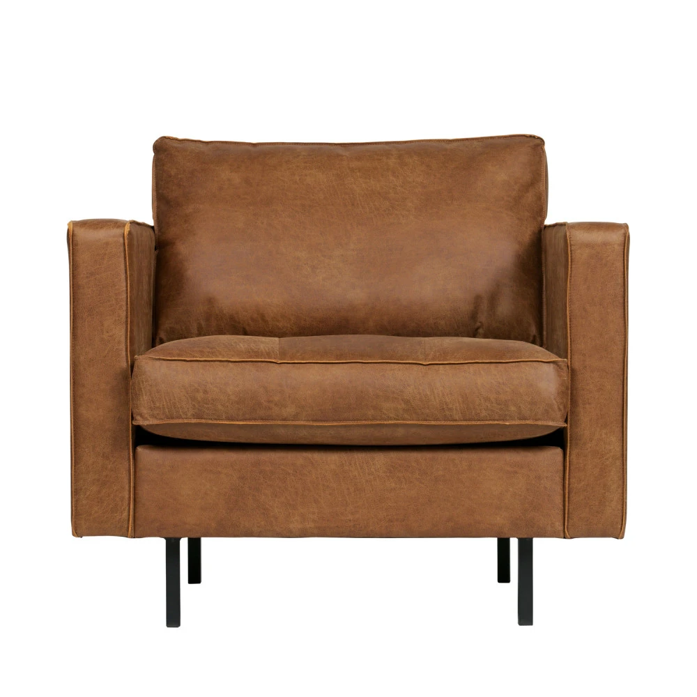 Le charisme du style classique avec une belle touche d’originalité avec le fauteuil en simili Bronco. On tombe sous le charme de son revêtement authentique en synderme. Il s’agit d’une matière spécifique, composé à 70% de cuir véritable et à 30% de polyester. La sous-couche est en cuir véritable recyclé, ce qui lui donne son aspect naturel et unique. Le cuir est protégé par un revêtement en polyester qui empêche les inégalités et en fait un tissu combiné résistant. Bronco est doté d’un piètement en métal noir simple pour assurer sa robustesse. À nettoyer avec un chiffon humide. En cas de taches, utiliser une solution de savon neutre, puis essuyer avec un chiffon humide. Ne pas utiliser de la graisse pour cuir. Cette charmante création est disponible en cognac et noir.