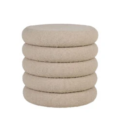 Ce modèle nous plaît grâce à 3 éléments : déjà, son design. Il présente une forme arrondie, comme si l’on avait superposé 5 bouées, une forme originale pour un pouf, tout en étant indémodable. Il apportera une note cosy et accueillante à votre intérieur. Ensuite, sa matière : sa structure en contreplaqué et bois massif est recouverte de tissu bouclette (100% polyester). La bouclette est une matière très tendance depuis quelques saisons, et pour cause, c’est un textile tout doux et réconfortant. Enfin, on aime l’aspect pratique du pouf Brooklyn : vous remarquerez que l’assise est en fait un couvercle. Eh oui, en plus de servir de siège d’appoint, ce pouf fait également office de rangement ! Vous pourrez glisser dedans des plaids ou des effets personnels. Astucieux, n’est-ce pas ?