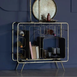Le casier à bouteilles Capo se présente comme une structure métallique à la finition laiton doré brillant d’une hauteur de 80,5 cm pour 87 cm de long et seulement 33 cm de profondeur. Autant dire qu’il pourra se poser partout, du salon à la salle à manger. Côté style, ce meuble assume une influence Art Déco, à la fois vintage et profondément chic : à accessoiriser avec les shakers typiques des années 30 !