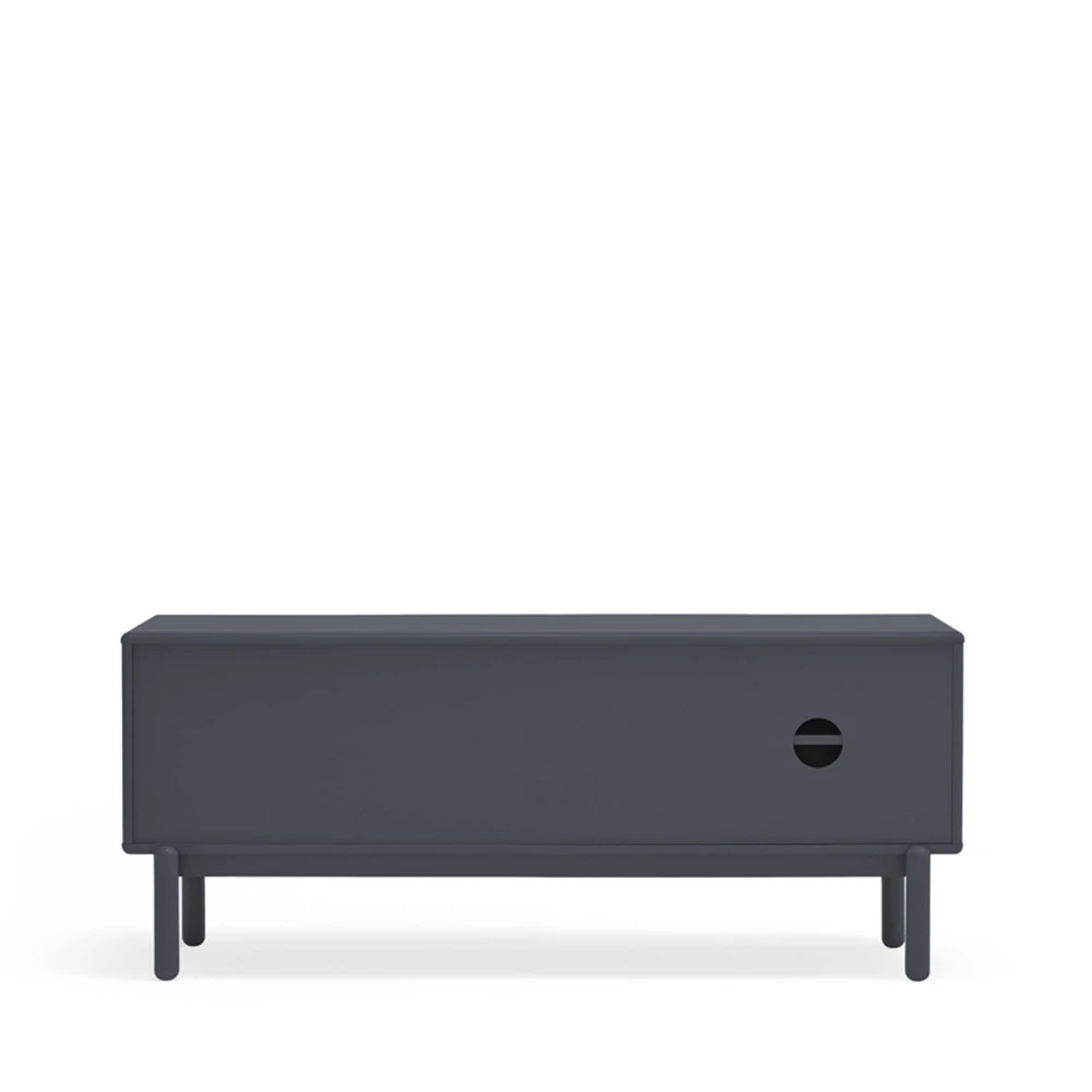 Le meuble TV Corvo se dote de 2 grands tiroirs en partie droite, d’une niche ouverte au milieu confectionnée en placage chêne, ainsi que de 2 espaces de rangement en partie gauche, avec passe-câbles fermés par une porte. Vous avez donc là toute la place nécessaire pour ranger vos consoles de jeu, votre matériel informatique, vos jeux de société, vos documents et tout ce qui peut traîner dans un séjour. La niche centrale peut également accueillir quelques beaux livres.