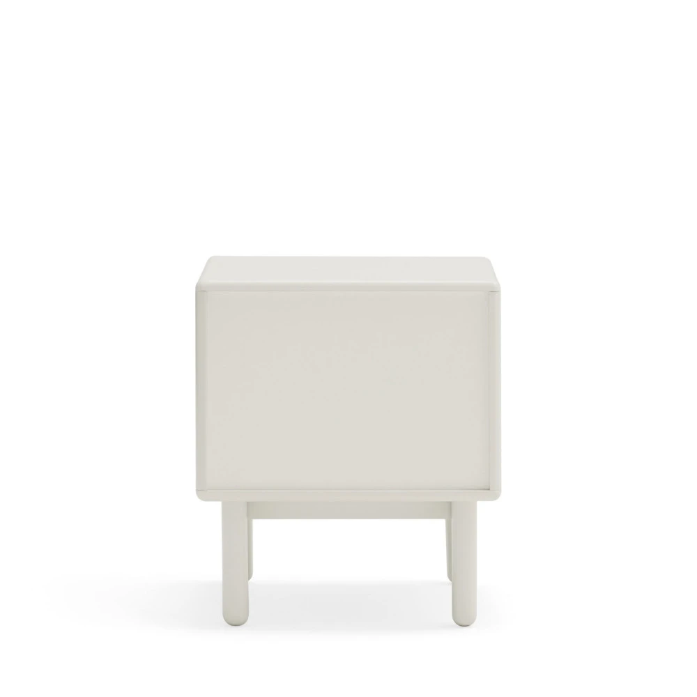 Cette table de chevet conçue en bois d’hévéa mesure 55 x 48 x 35 cm. Elle est dotée de 2 tiroirs du côté droit et d’une niche de rangement ouverte du côté gauche. Sa stabilité est assurée grâce à ses 4 pieds cylindriques.