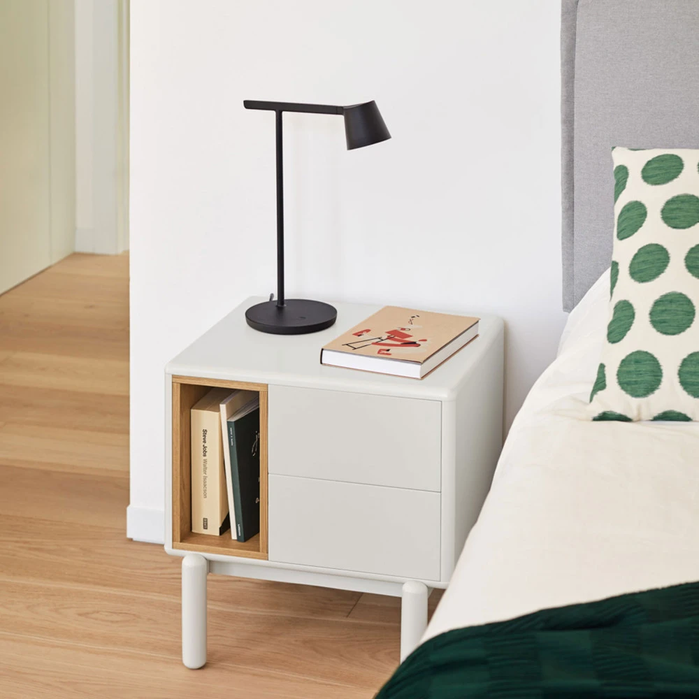 Cette table de nuit vous sera bien pratique au quotidien : vous aurez tous vos effets personnels essentiels à portée de main une fois au lit le soir. La niche de rangement pourra accueillir quelques livres, tandis que vous pourrez ranger toutes les affaires que vous ne souhaitez pas laisser en vue dans les tiroirs. Sur le dessus de la table, vous pourrez poser une lampe d’appoint, votre réveil ou un bel objet de déco.