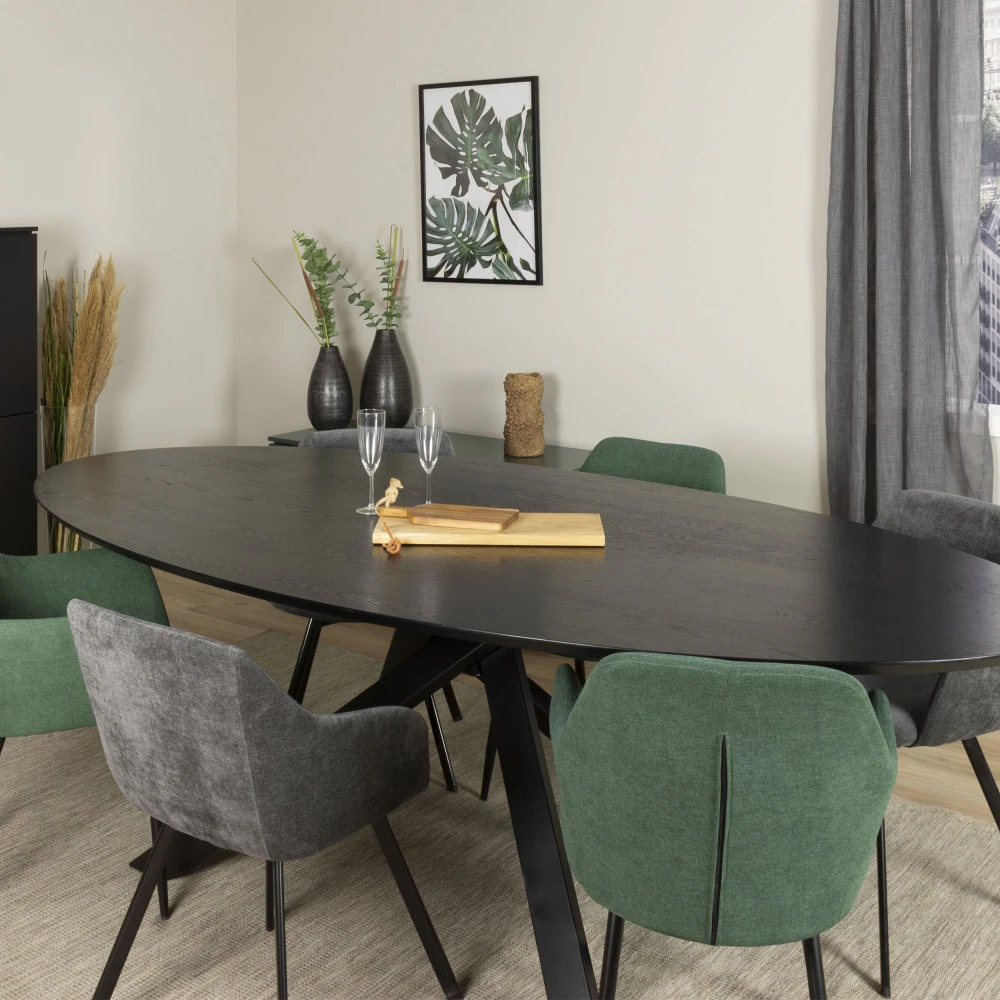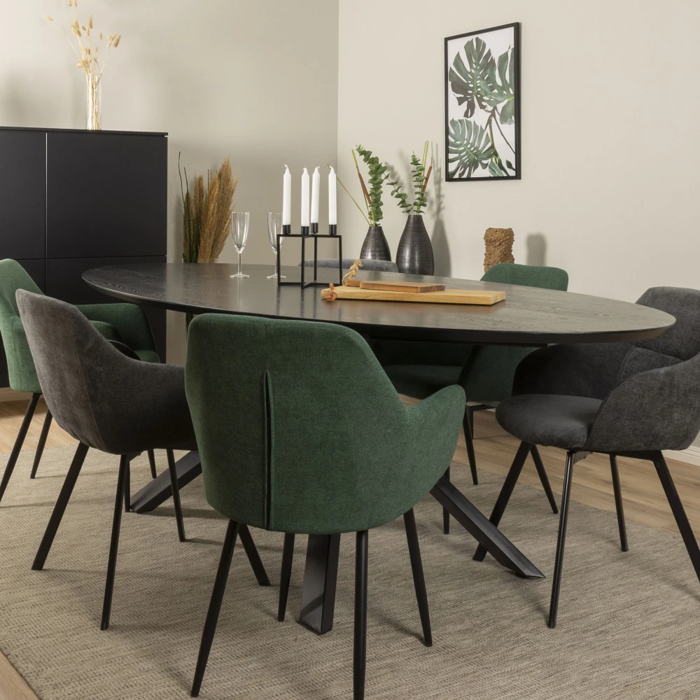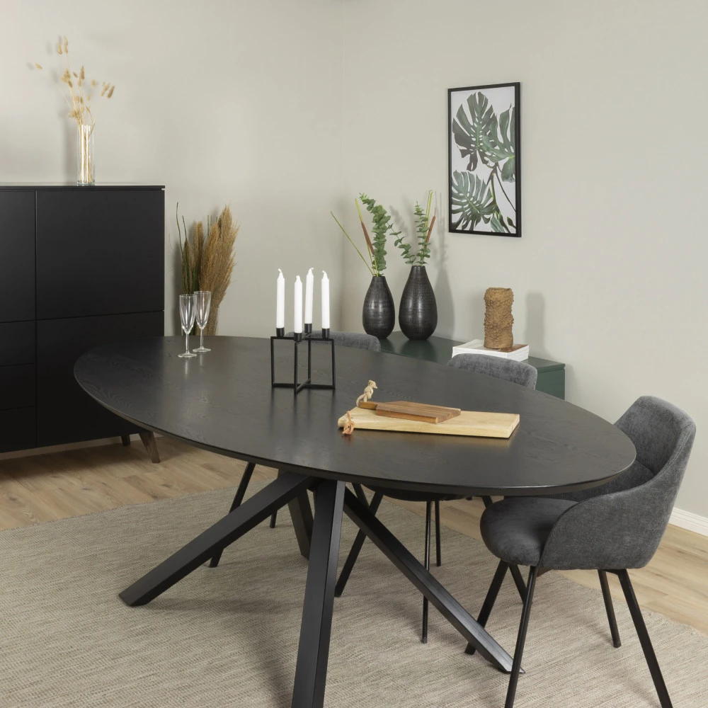Cox est une table à manger en bois et métal conçue dans un style original alliant modernité et esprit nordique. Ses lignes pures lui confèrent un côté léger, tandis que son piètement au design sculptural ajoute une note de caractère à l’ensemble. Bénéficiant d’une sublime finition noire, elle se fond harmonieusement dans tous les intérieurs et donne du cachet à la pièce. Pour souligner une déco moderne et cosy, on n’hésite pas à la combiner avec des fauteuils de table design aux lignes voluptueuses.