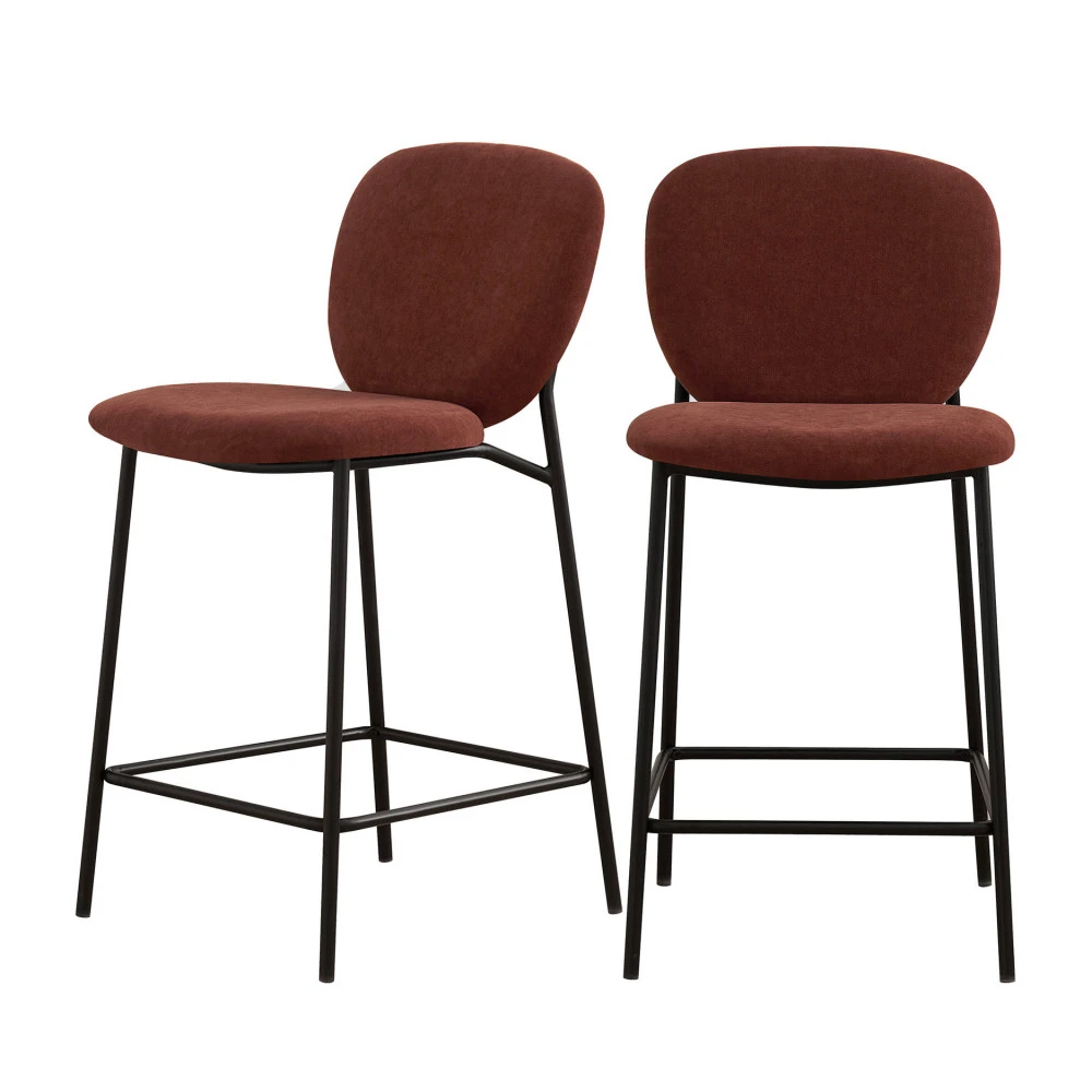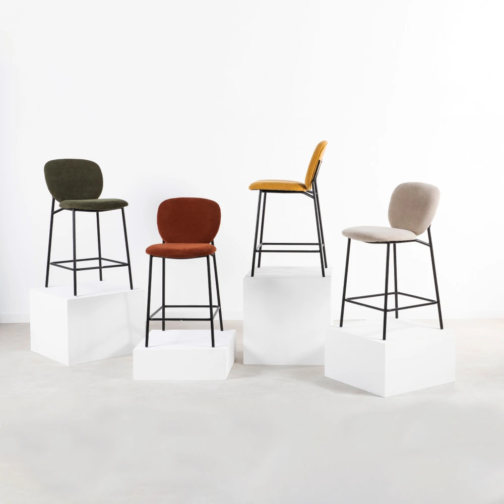 Ces tabourets de bar plairont aux amateurs de mobilier contemporain. Ils affichent des lignes indémodables, avec des bords arrondis et des pieds très fins liés sur le bas. Et côté matériaux ? Leur structure est faite de contreplaqué, mousse et tissu, avec un revêtement en tissu. Leur piètement est en métal, ce qui apporte une note industrielle.