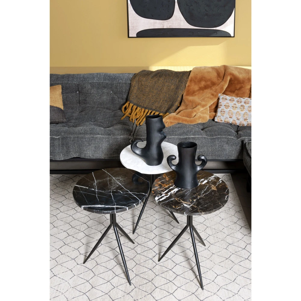 Envie d’apporter du changement dans la déco de la maison ? Besoin d’une nouvelle table basse pour compléter les meubles du salon ? Avec Dana, la table basse contemporaine au look épuré, la réalisation d’un tel projet devient encore plus passionnante que jamais. Le plateau est fabriqué en marbre pour un joli contraste avec le piètement en métal noir. Simple et sobre, mais assurément design, cette table est l’article déco idéal pour meubler l’intérieur en toute délicatesse. Dana se décline en trois coloris : brun, vert et blanc. Chaque modèle est personnalisé par les veines et les taches du marbre. Le plateau est supporté par un piètement central trépied. L’ensemble donne au meuble, une allure saisissante. Remarquable par sa grande élégance, cette petite table basse en marbre ø40 cm gardera sa place au centre de toutes les conversations.