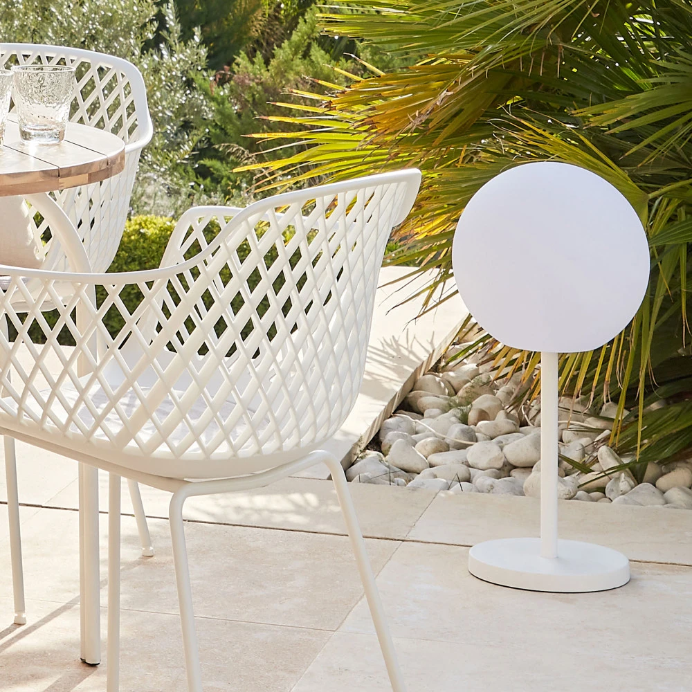 Parée d’une couleur sobre, la lampe d’extérieur Dinesh affiche un design plutôt futuriste tout en rondeurs. Elle pourra être assortie à une table de jardin moderne de même coloris ou bien venir jouer les contrastes aux côtés d’une table plus rustique en bois. Très pratique, elle vous permettra de prolonger les soirées en extérieur une fois la nuit tombée. Vous pouvez maintenant profiter de votre extérieur de jour comme de nuit !