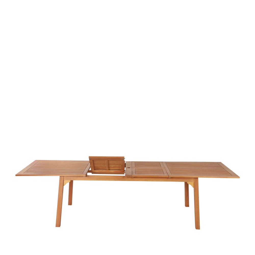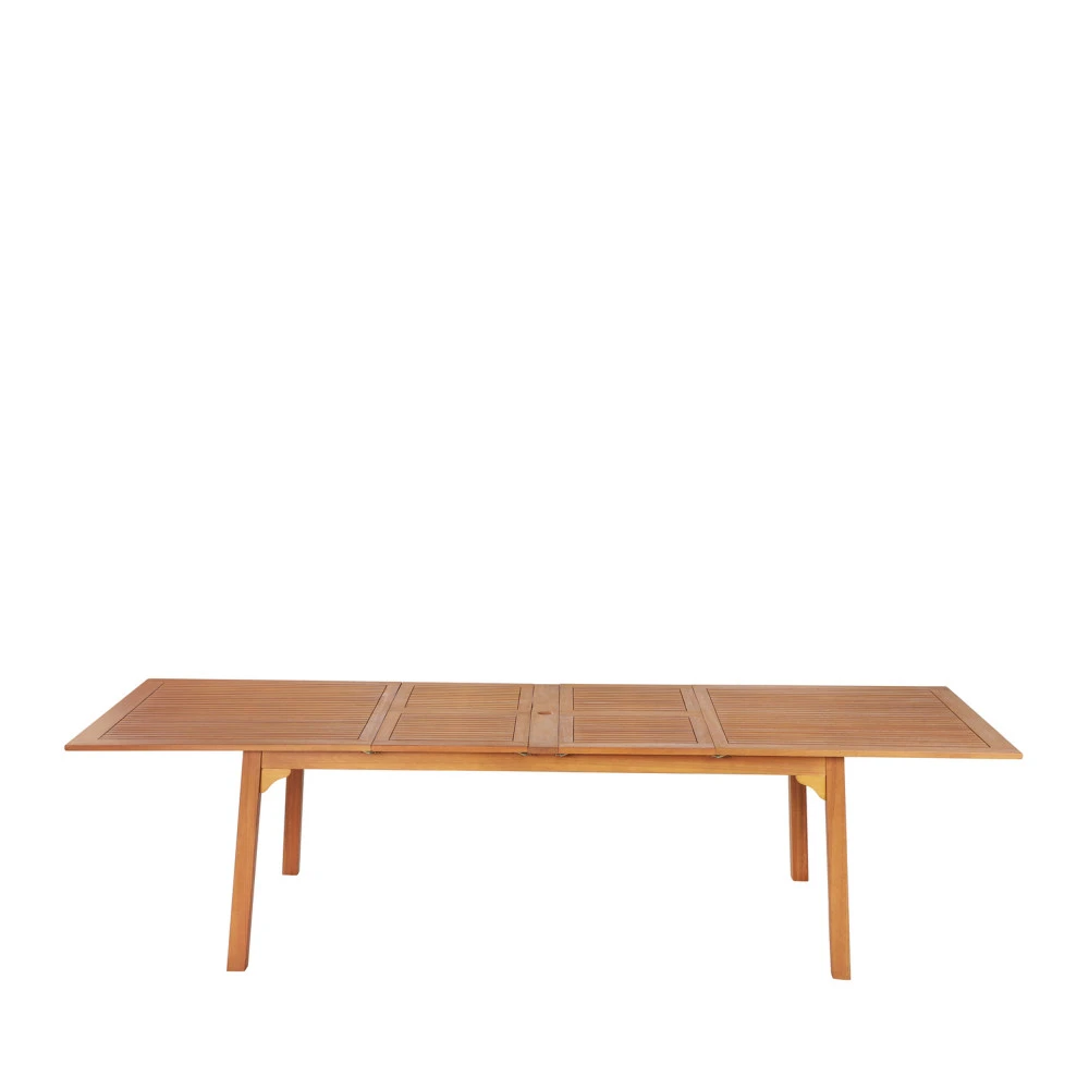 En dépliant la première rallonge papillon, vous passerez de 8 à 10 places en un clin d’œil. La seconde, quant à elle, vous permettra d’ajouter deux couverts supplémentaires. Et vous voilà 12 autour de la table ! Le plateau à lattes rectangulaires mesure, au maximum 300 cm de largeur sur 100 cm de profondeur. Personne n’aura plus besoin de jouer des coudes pour trouver sa place.