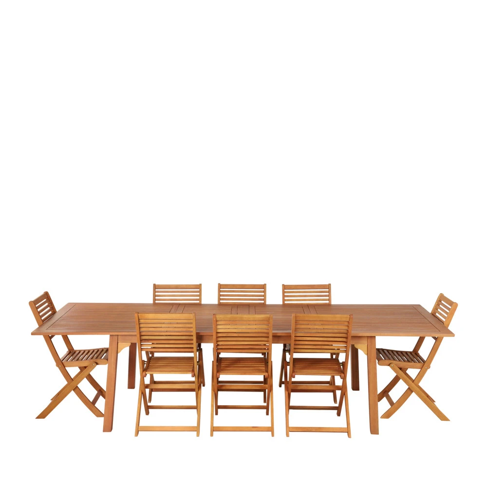 Cet ensemble de jardin au look scandinave est fabriqué en bois massif d’eucalyptus FSC dont on apprécie la teinte claire et la facilité avec laquelle vous pourrez le marier au reste de votre mobilier extérieur. Les chaises pliables sont aussi un atout, car il vous sera facile de les installer et de les ranger en fonction du nombre d’invités présents.