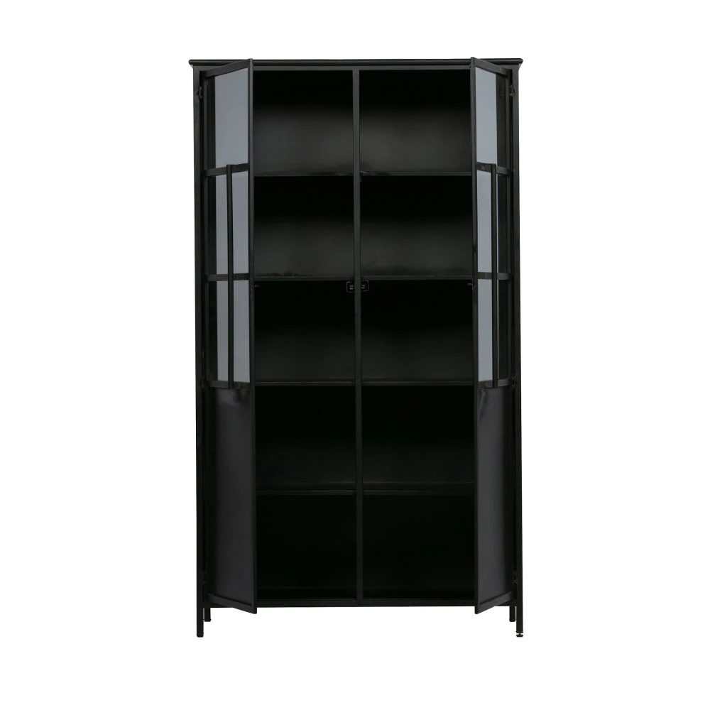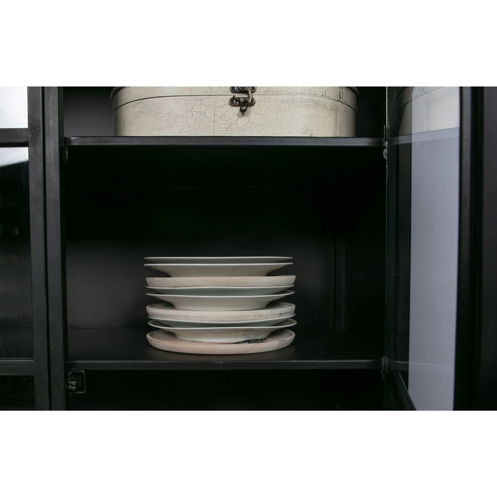 Les portes hautes de 156,5×45 cm de dimensions sont en métal noir. Le vitrage est en verre trempé pour plus de résistance. Les poignées sont également très robustes. L’intérieur d’Exhibit est équipé de 4 étagères sur toute la largeur de l’armoire pour contenir un maximum d’objets. La distance entre les étagères est de 29-31 cm. Chaque étagère peut supporter jusqu’à 20 kg de charge. Tendance phare du moment dans le salon, le meuble vitrine s’installe également dans la cuisine ou dans la salle à manger en toute élégance.
