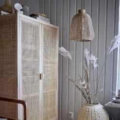 Cette suspension présente une forme classique en cloche faite de papier tressé et se dote d’une base en métal. Elle sera facile à intégrer à votre déco, dans une ambiance vintage et bohème notamment. Elle se mariera bien avec des meubles en bois, en cannage ou en rotin, des fleurs séchées dans des vases artisanaux et des tapis tout doux.