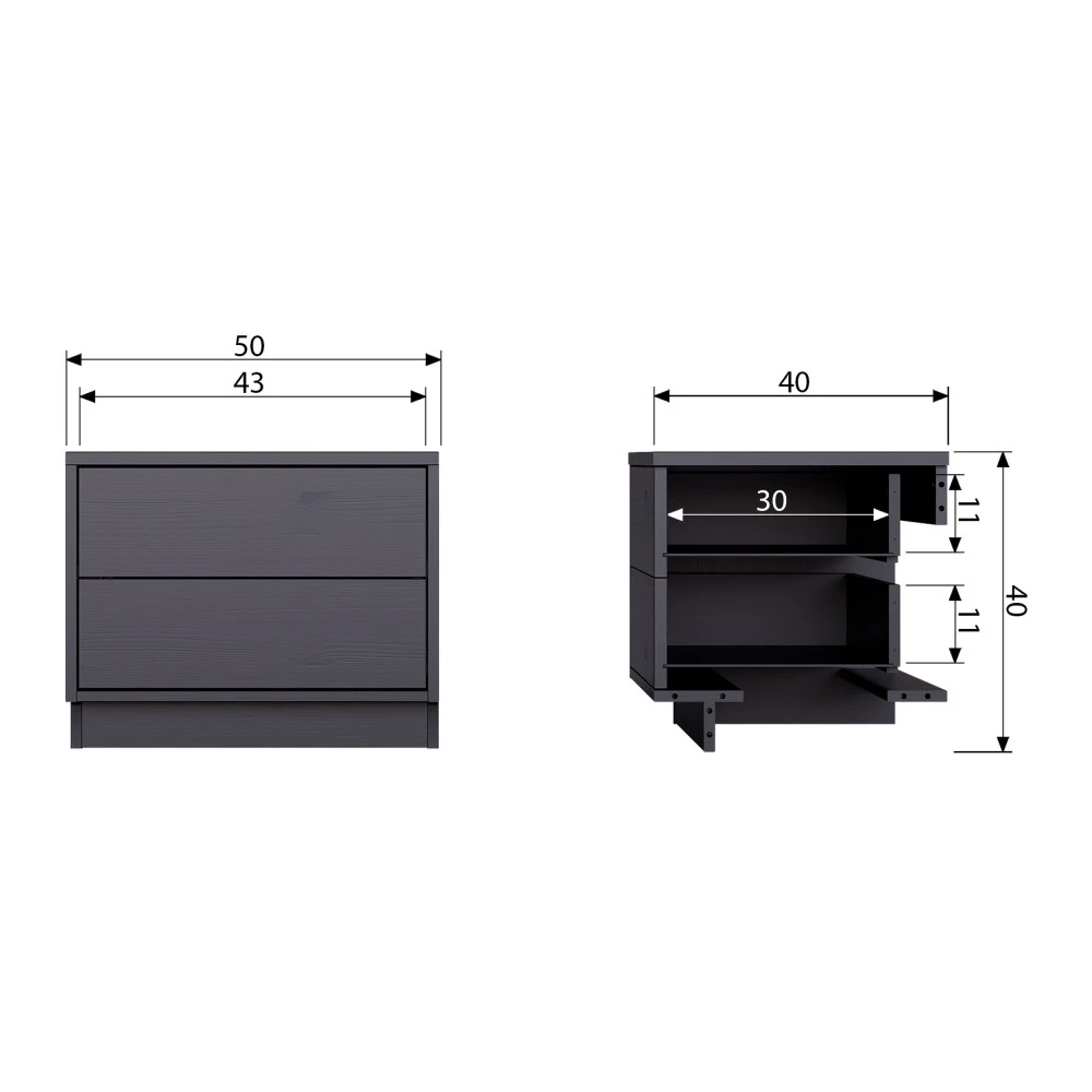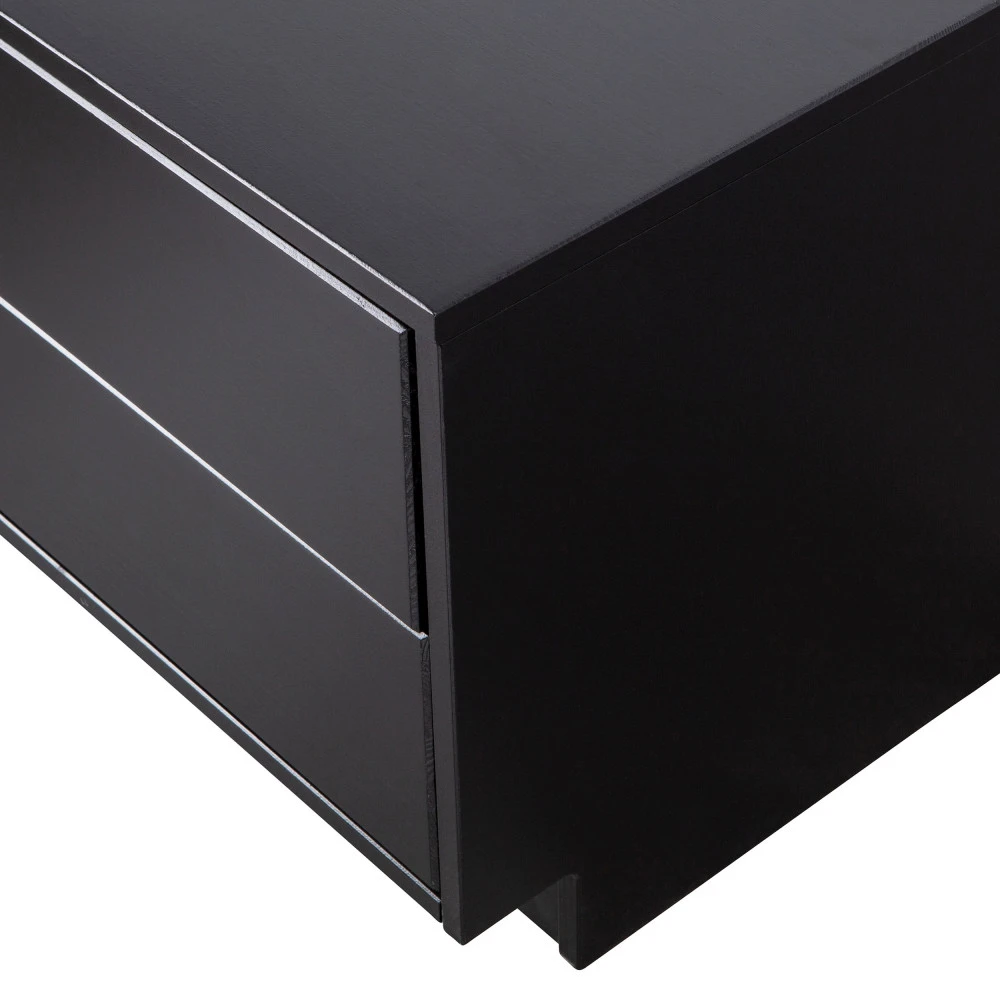 La hauteur et la profondeur de 40 cm pour une largeur de 50 cm de ce meuble de télévision le destinent plutôt à des pièces de vie petit volume, où on appréciera d’autant plus son espace de rangement. Prenons donc le temps de le détailler : atout majeur, les tiroirs bénéficient d’un système de push-to-open qui libère les façades de poignées. Une fois ouverts, les deux tiroirs révèlent chacun une capacité de rangement de 43 cm de longueur pour 30 cm de profondeur et 11,5 cm de hauteur. Vous pourrez y ranger jusqu’à 10 kg de babioles indispensables à votre salon, comme les jeux de console ou les magazines.
