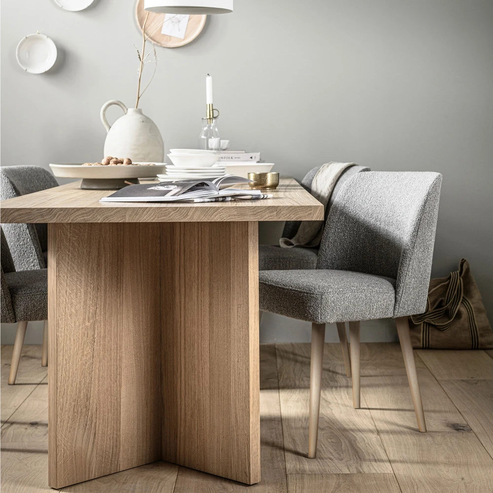 Une table ne saurait se passer de belles chaises, designées pour donner du style à votre salle à manger, et suffisamment robustes pour traverser le temps avec brio. Avec les chaises Force, vos invités auront le plaisir de trouver une large assise (10cm) rembourrée confortable, ce qui aura pour effet de les garder un peu plus longtemps avec vous ! Déclinées dans une gamme de tissu bouclette aux coloris sobres, elles donneront la réplique à tous les styles de tables. Les pieds sont en bois naturel et adoptent la forme « compas » très actuelle.