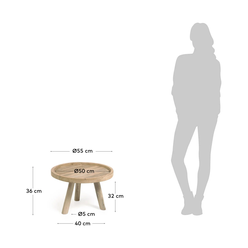 Elégant et discret, ce petit meuble est l’élément idéal pour apporter la touche qui fait la différence dans le salon. La table basse Glenda est d’une beauté attachante avec son matériau 100% naturel qui apporte une note chaleureuse et cocooning à la pièce. Equipée d’un plateau pratique de ø55 cm de diamètre, cette table est conçue en bois massif de teck encadré : une matière très résistante et durable. Ses 3 pieds en forme de tube en fait une table basse à la fois originale et moderne qui s’adapte à des styles d’intérieurs variés. Chaque modèle présente des tonalités et veinures uniques.