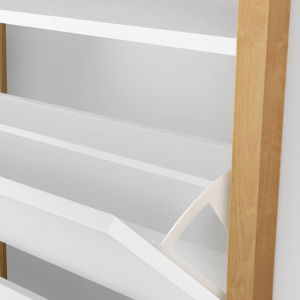 Ce meuble en bois signé Woodman se démarque des autres meubles à chaussures grâce à la présence d’une petite étagère au-dessus des deux portes. Vous pourrez vous en servir pour déposer vos clés et même votre paire de lunettes de soleil. Aucun risque de les oublier en partant le lendemain. La partie supérieure, quant à elle, pourra accueillir vos plus beaux objets de décoration pour styliser votre entrée. Tout en longueur, il s’adaptera aux espaces les plus restreints.