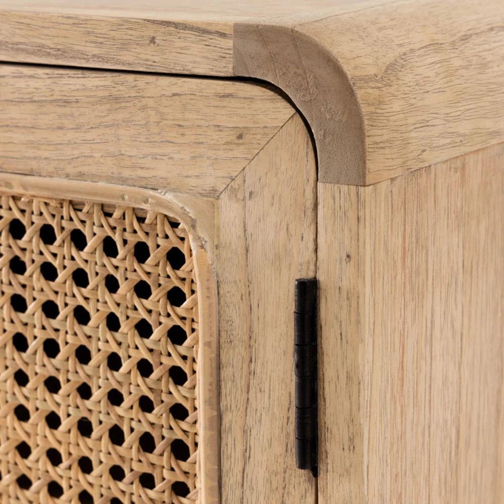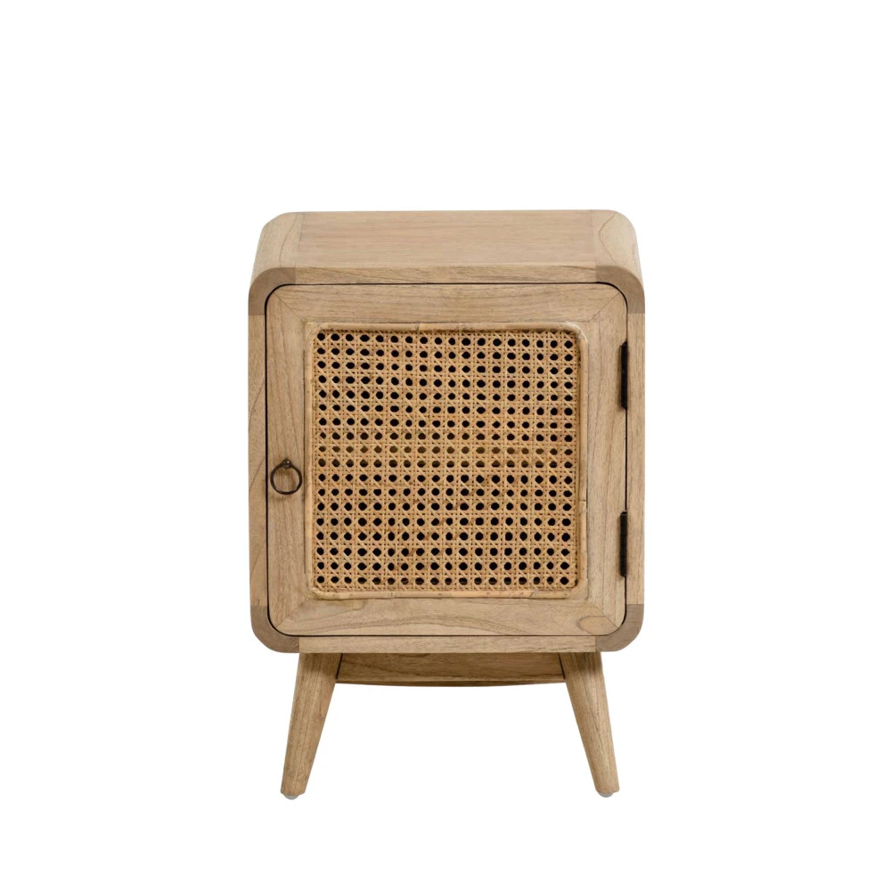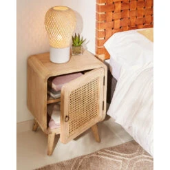 Flashback dans les années 60. Avec la table de chevet en bois et cannage Jarabacoa, on a l’impression d’utiliser un vieux poste de télévision en guise de chevet. Et c’est merveilleux. Ce meuble séduit par ses angles arrondis et par ses pieds robustes inclinés qui assurent une excellente stabilité. Fabriqué en bois préservé dans sa couleur naturelle, ce meuble dispose d’un charme particulièrement séduisant.