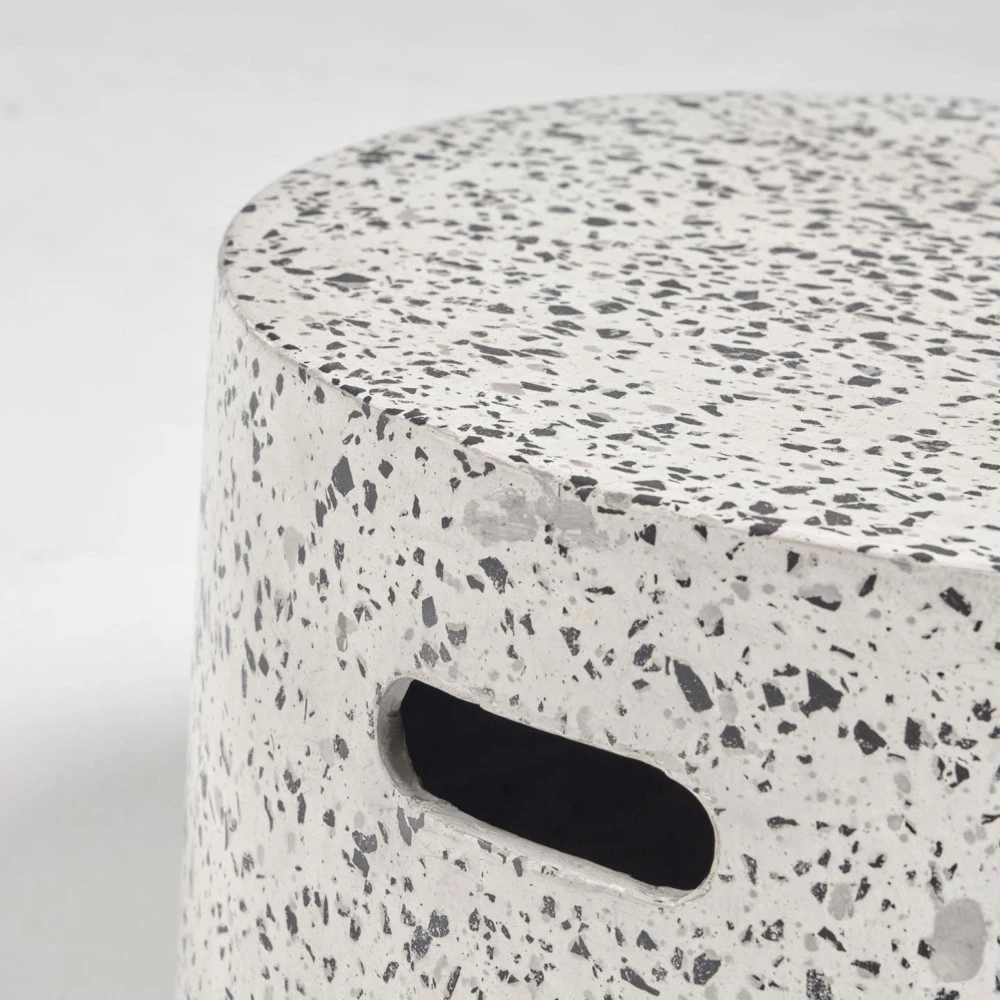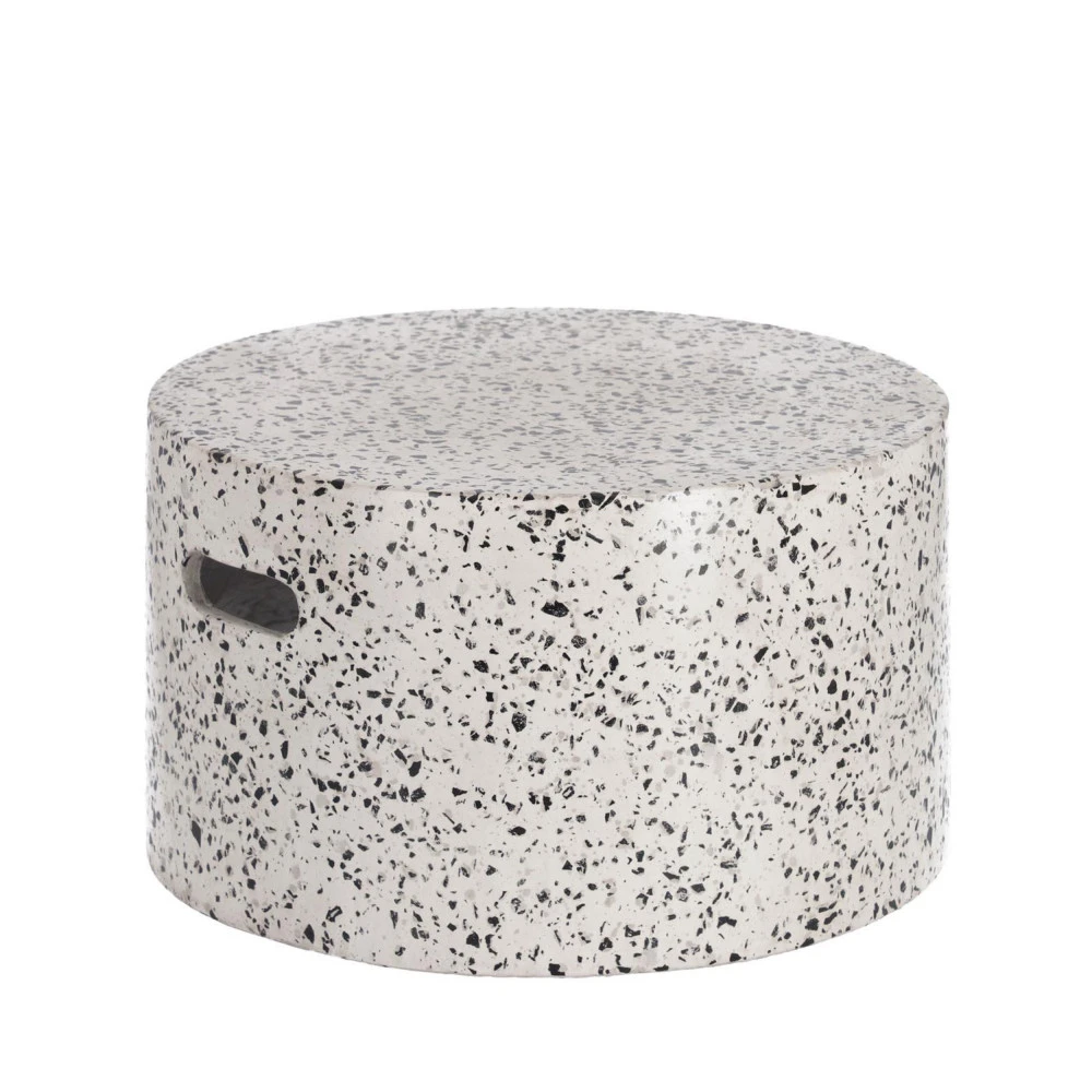 Quand il est question de peaufiner la décoration extérieure, les meubles en terrazzo sont pile-poil dans la tendance. La table basse Jenell en terrazzo blanc de ø52 cm affiche sa créativité et son design moderne. D’une forme cylindrique et d’un coloris blanc si élégant, ce meuble permet de rendre chaque espace encore plus cosy. On l’installe sur la terrasse, sur le balcon, dans un coin du jardin ou ailleurs. Cette table basse est parfaite pour déposer les tasses de thé, une assiette de petits bouchés, le journal, un livre, etc. Le trou permet de le déplacer facilement. Nettoyage facile : un simple coup de chiffon doux !
