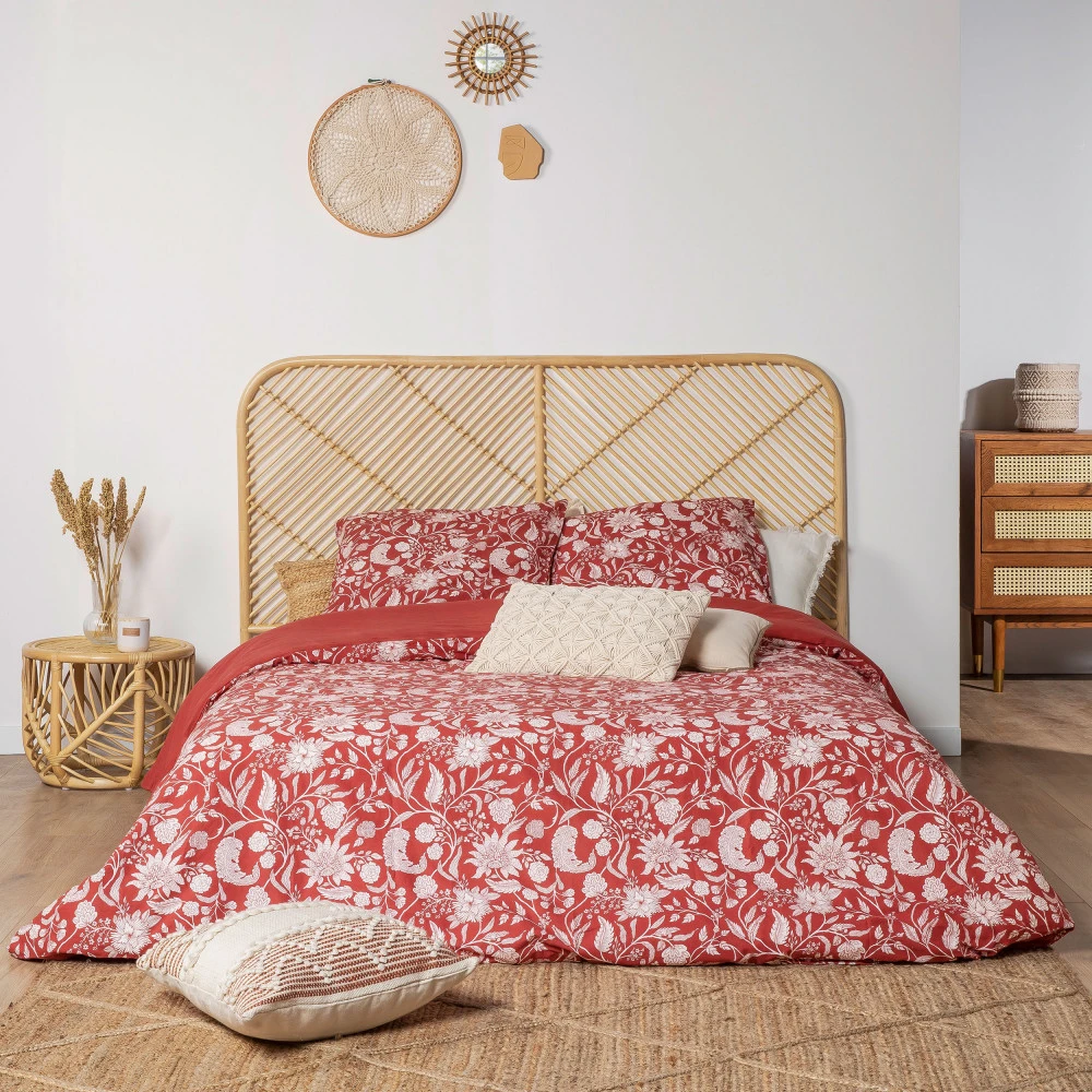 Pour la mettre en valeur, on n’hésite pas à l’assortir à des tables de nuits en rotin ou une jolie compo de miroirs au mur, et on l’accessoirise à l’aide d’une jolie parure de lit aux motifs exotiques, et de nombreux coussins colorés !