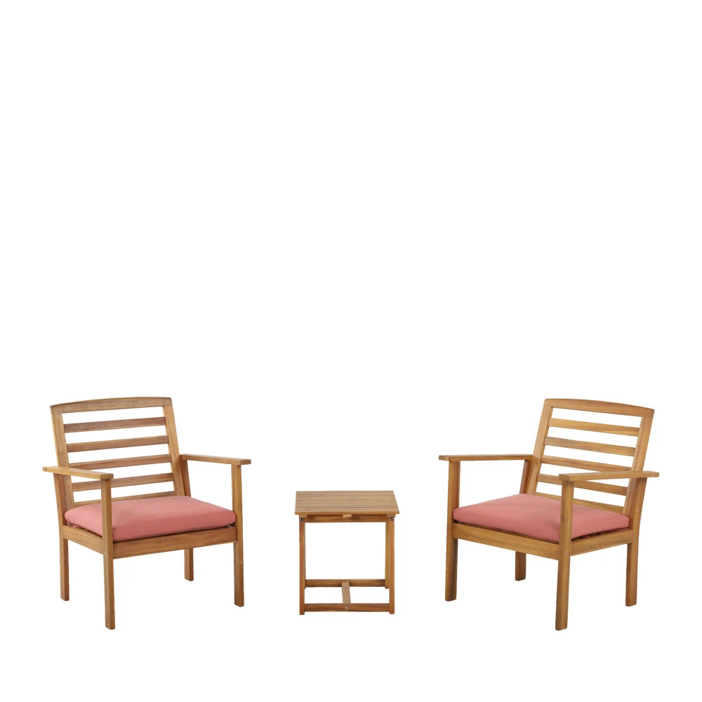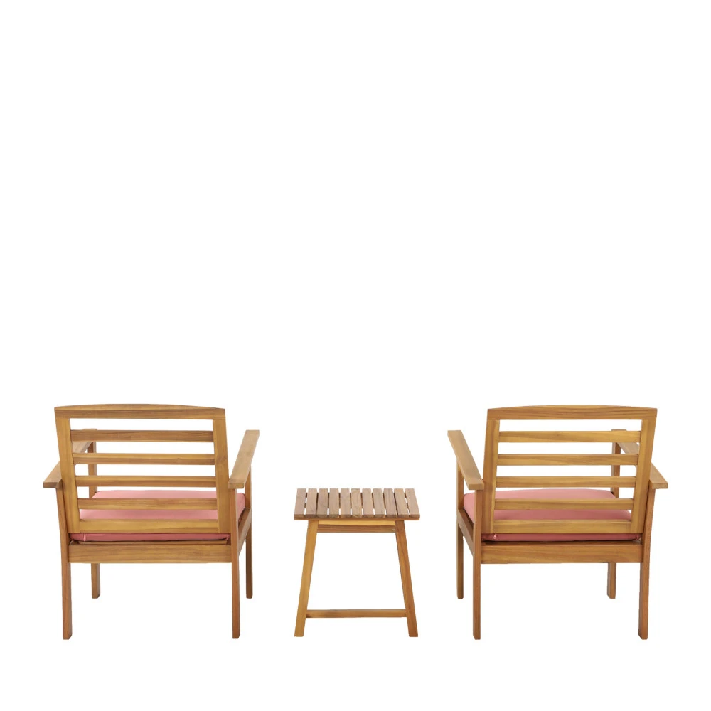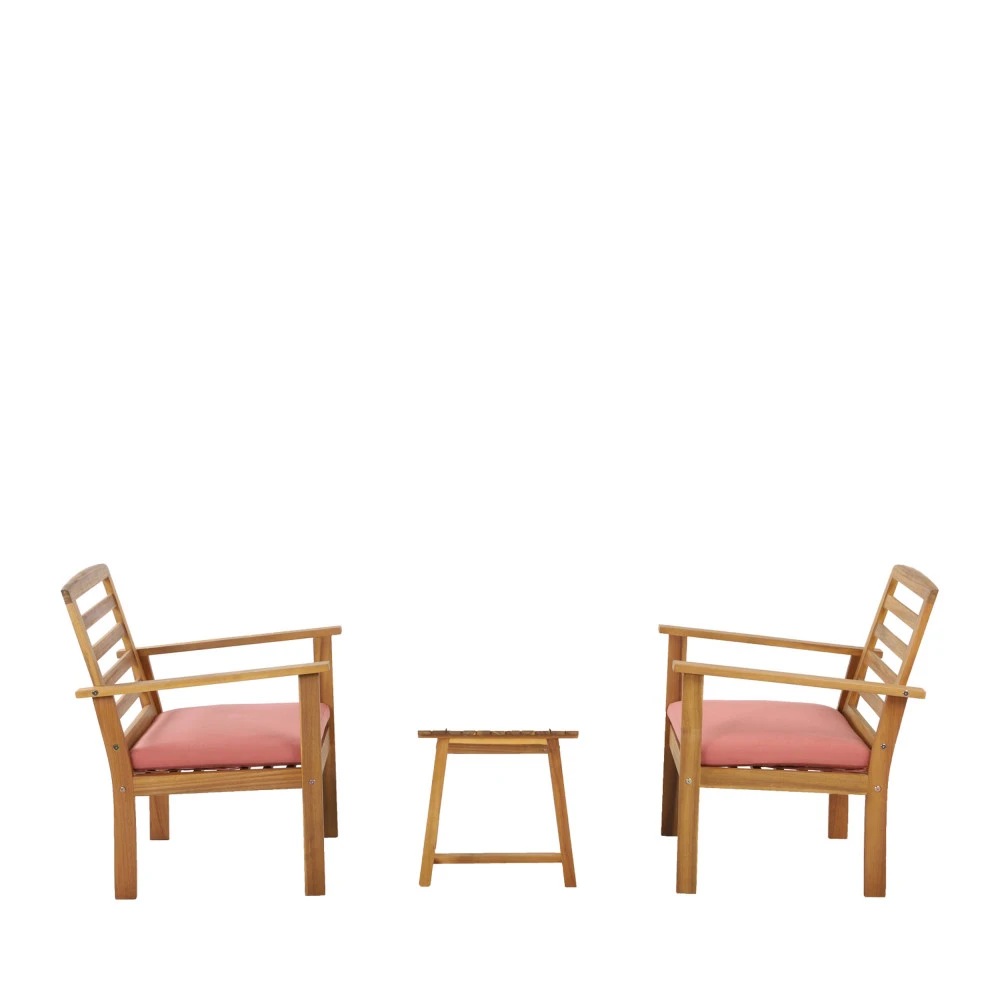 Celui-ci est composé d’une table basse et de 2 fauteuils, chacun mesurant 77 cm de hauteur, 61 cm de largeur et 63 cm de profondeur. La table sera parfaite pour y déposer votre tasse de café, de quoi grignoter ou votre lecture du moment. Grâce aux coussins au revêtement en tissu polyester présents sur l’assise, vous ne verrez pas le temps passé.