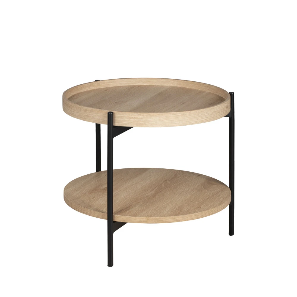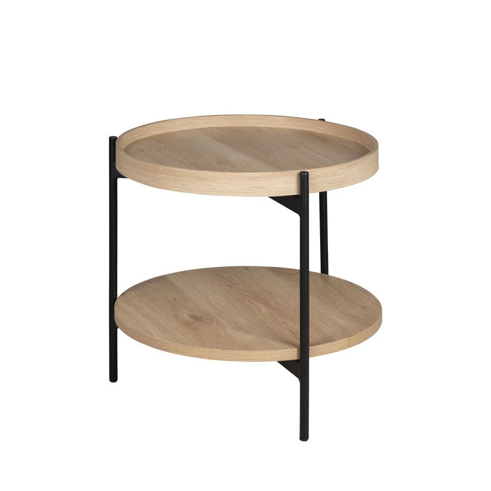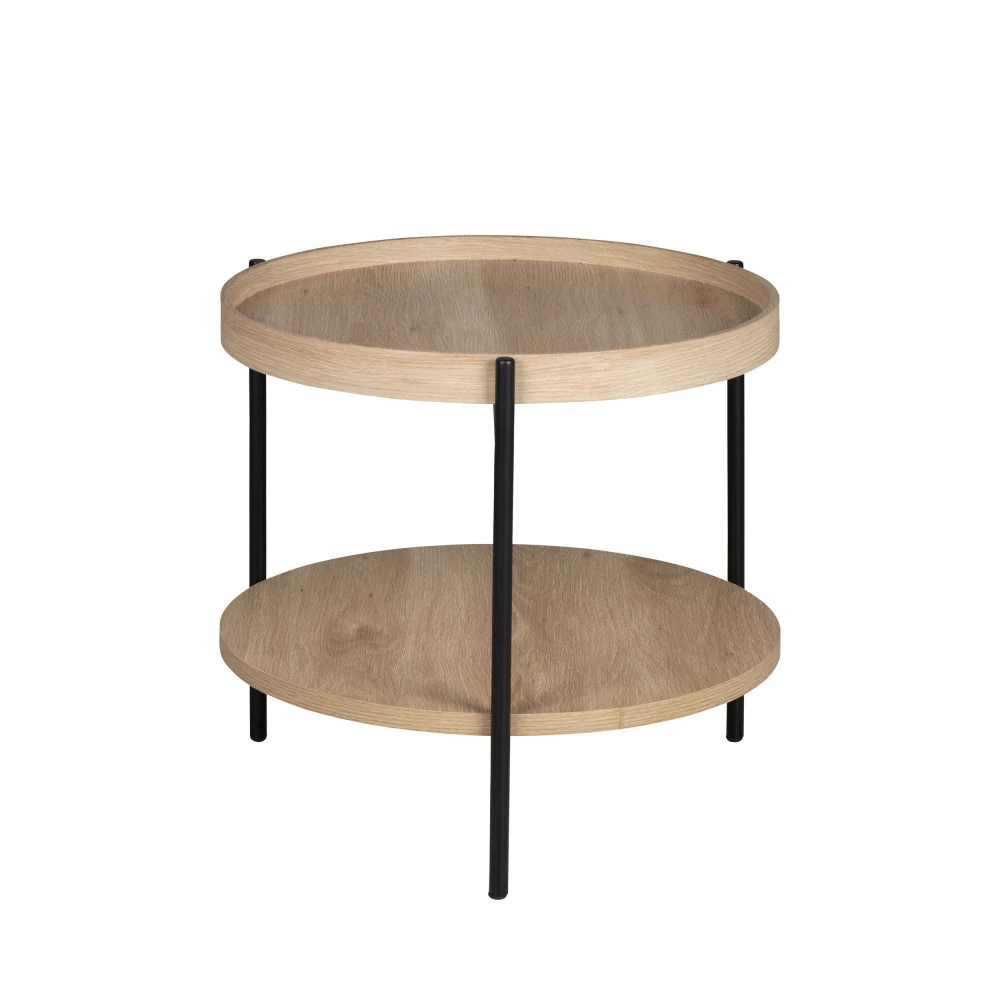Ce modèle indémodable se dote de 2 plateaux ronds en bois (MDF et mélaminé), un classique au niveau inférieur et un à bords hauts au niveau supérieur. On peut facilement leur trouver une utilité chacun : sur le bas, vous pourrez poser votre pile de magazines ou un joli bibelot, tandis que le dessus de la table pourra servir à poser boissons et en-cas. Vous pouvez sinon déposer les objets utiles sur le bas et décorer le haut avec un superbe vase.