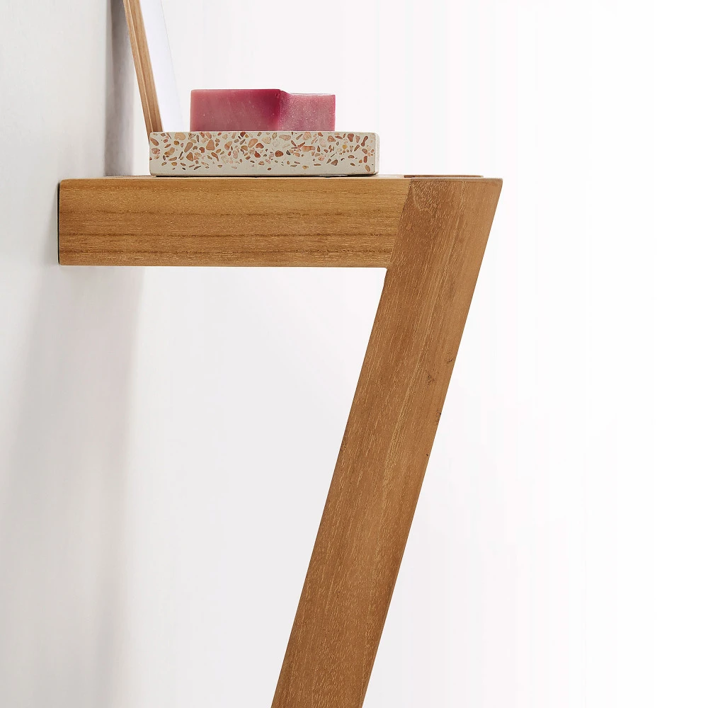 Kuveni a entièrement été fabriqué en bois de teck dont la nuance claire illuminera votre salle de bain. Les tonalités et textures de ce matériau variant d’une pièce à l’autre, vous serez assuré d’avoir en votre possession un modèle unique.