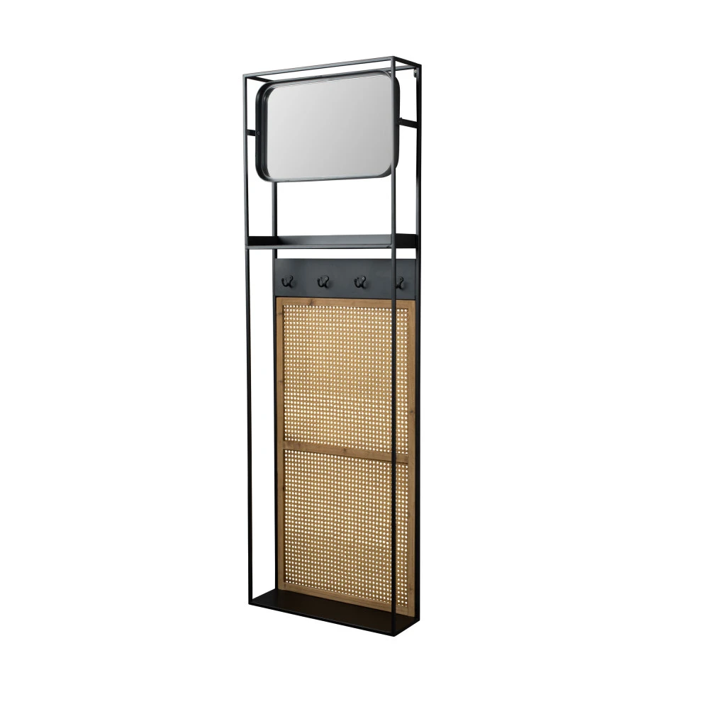 LANGRES Vestiaire D’entrée Avec Miroir En Métal Et Cannage