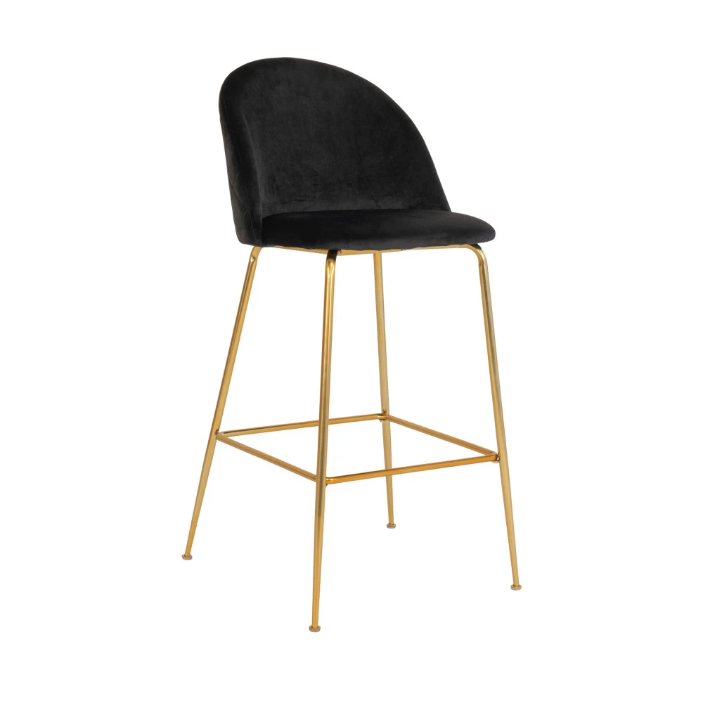 Ces chaises de bar mesurent 108 x 55 x 60 cm. Elles se dotent d’une assise classique et d’un dossier à la forme enveloppante en velours noir, joliment quadrillé sur l’arrière, puis de pieds fins en métal doré reliés les uns aux autres.