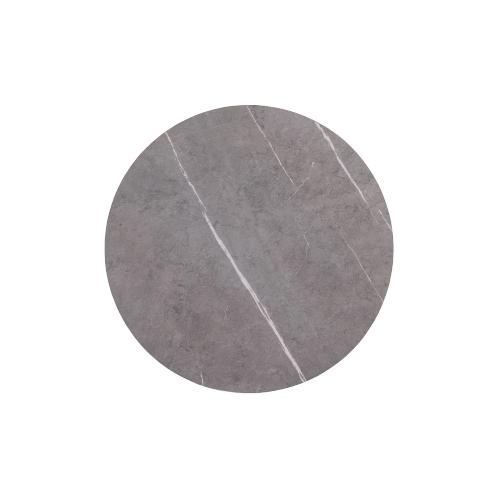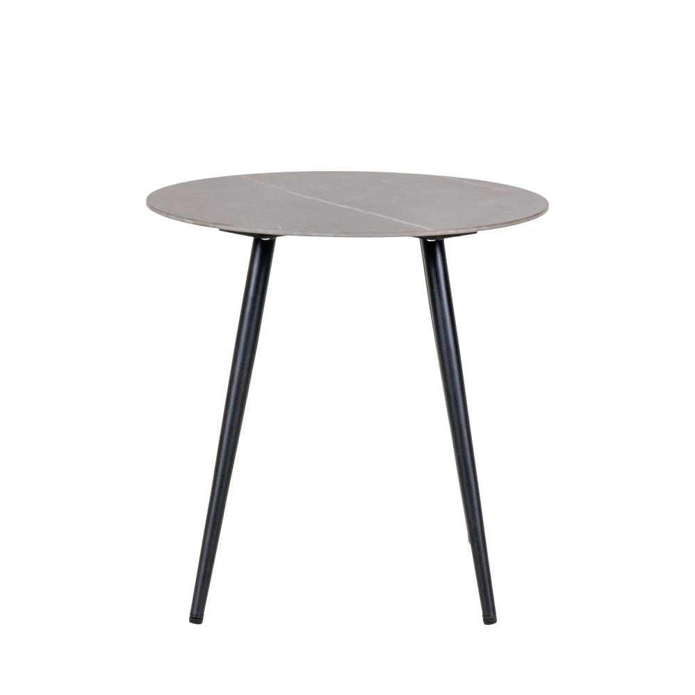 Cette table d’appoint de forme ronde classique mesure 45 cm en hauteur comme en diamètre. Elle se dote d’un plateau fin en céramique effet marbre. Le rendu est joli, n’est-ce pas ? Vous remarquerez les jeux de nuances apportées à la matière, comme les veines propres au marbre. La table est également pourvue de 4 pieds cylindriques en acier, constituant une base solide.
