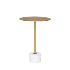 Cette table d’appoint se compose d’un plateau très fin en acier effet laiton, à la forme ronde classique, maintenu par un pied central cylindrique assorti, puis d’un socle imposant contrasté en marbre, rond également, constituant un appui solide. Ce design est à la fois indémodable, chic et recherché, vous ne trouvez pas ?