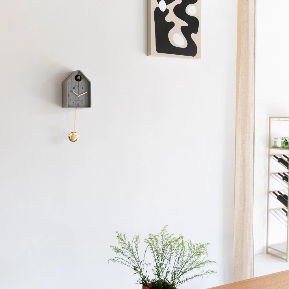 Passons aux infos techniques : l’horloge Lori est confectionnée en aluminium et mesure 42 x 15 x 10,5 cm. Elle fonctionne avec 3 piles LR14. Bon à savoir : le balancier peut être supprimé, et le niveau sonore du coucou peut être ajusté : chez Drawer, on aime les objets modulables. Autre info importante : le coucou ne « chante » pas entre 22h et 5h du matin : pas d’inquiétude, vous pourrez donc faire vos nuits sans être dérangé par le chant du petit oiseau !