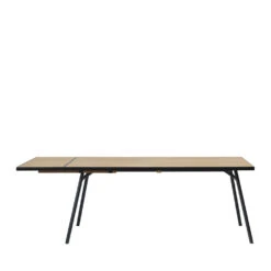 Plutôt qu’un pied central unique ou 3 pieds classiques, la table Lourdes est soutenue par 3 panneaux obliques, pour un rendu robuste et moderne.