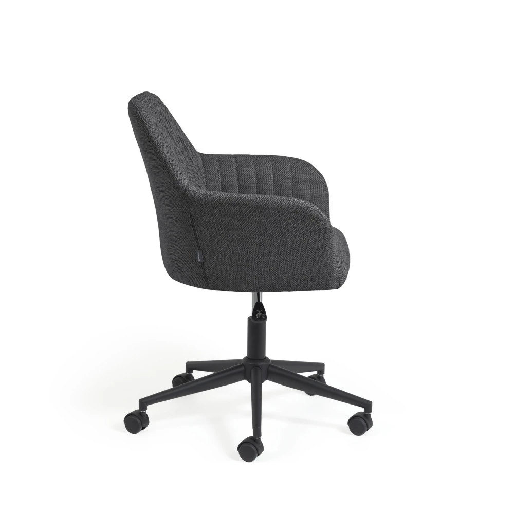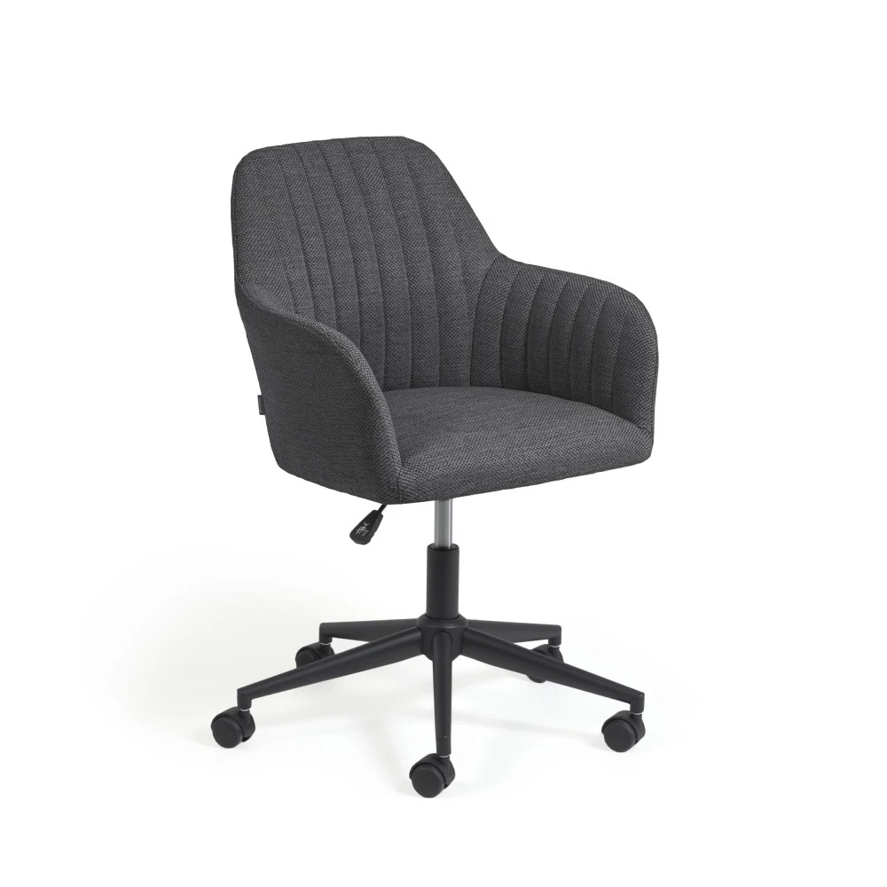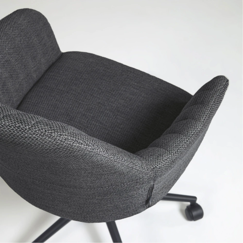 Esthétisme et fonctionnalité sont judicieusement réunis dans le design de ce mobilier de bureau au look contemporain afin de profiter d’une sensation confortable propice à la productivité. La chaise de bureau pivotante à roulettes Madina est d’une élégance irrésistible avec son revêtement confectionnée dans une matière douce au toucher. Fabriqué dans un tissu traité anti-taches, ce modèle a l’avantage d’être facile à nettoyer et simple à entretenir. Son assise enveloppante est généreusement garnie de mousse pour offrir un confort supérieur. Grâce à son style sobre et épuré, elle trouve facilement sa place dans n’importe quel intérieur. Madina est disponible en deux coloris : gris clair et gris foncé.