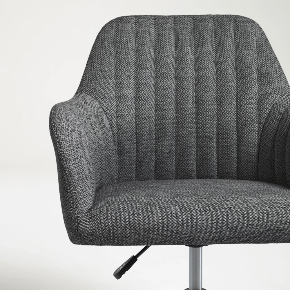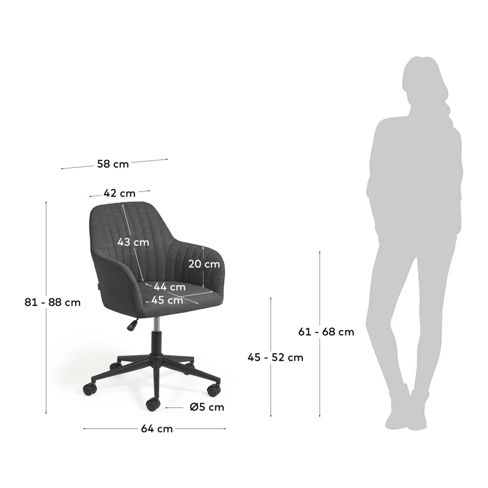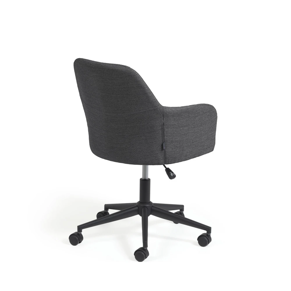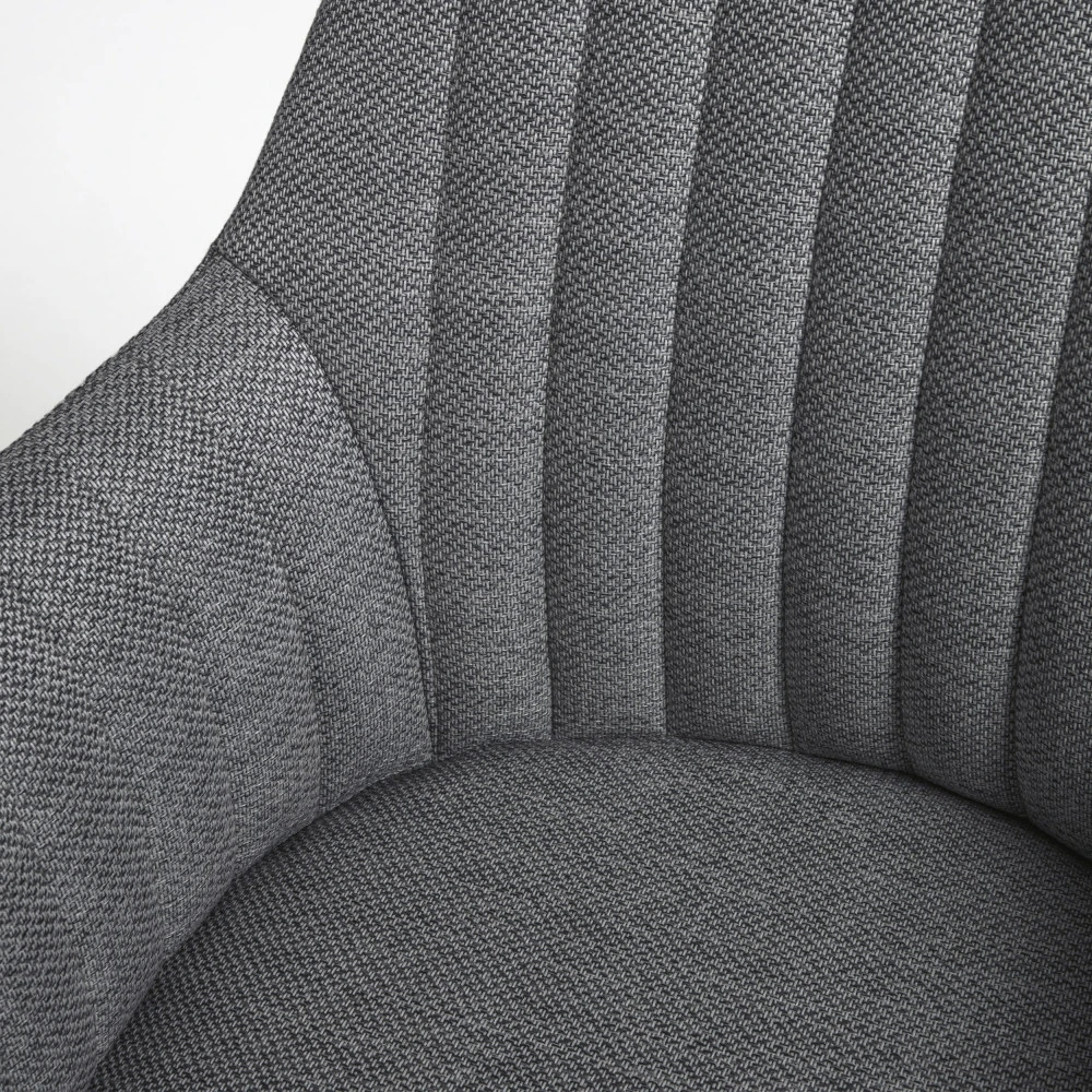 Esthétisme et fonctionnalité sont judicieusement réunis dans le design de ce mobilier de bureau au look contemporain afin de profiter d’une sensation confortable propice à la productivité. La chaise de bureau pivotante à roulettes Madina est d’une élégance irrésistible avec son revêtement confectionnée dans une matière douce au toucher. Fabriqué dans un tissu traité anti-taches, ce modèle a l’avantage d’être facile à nettoyer et simple à entretenir. Son assise enveloppante est généreusement garnie de mousse pour offrir un confort supérieur. Grâce à son style sobre et épuré, elle trouve facilement sa place dans n’importe quel intérieur. Madina est disponible en deux coloris : gris clair et gris foncé.
