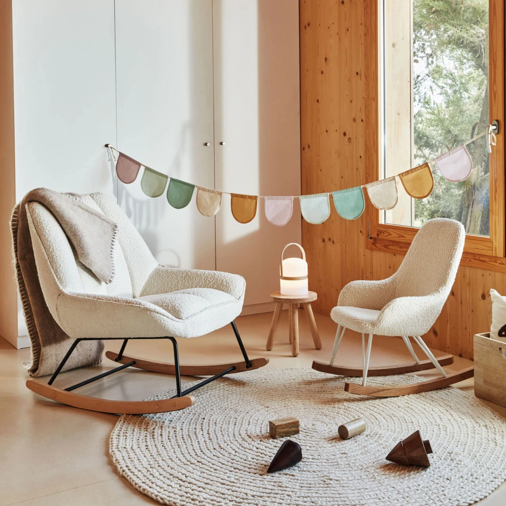 Dossier enveloppant, structure en métal peint en noir, pieds en hêtre massif avec finition naturelle… On adore le rocking-chair en bouclette Marlina, qui affiche un design frôlant la perfection. Ce fauteuil à bascule allie raffinement et confort avec son tissu bouclé doux d’une blancheur immaculée. Ses courbes douces le rendent hyper confortable et agréable visuellement.