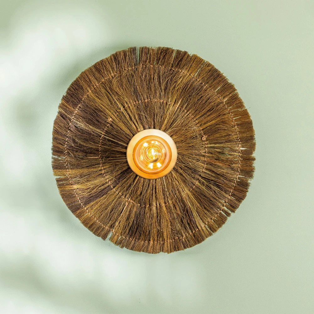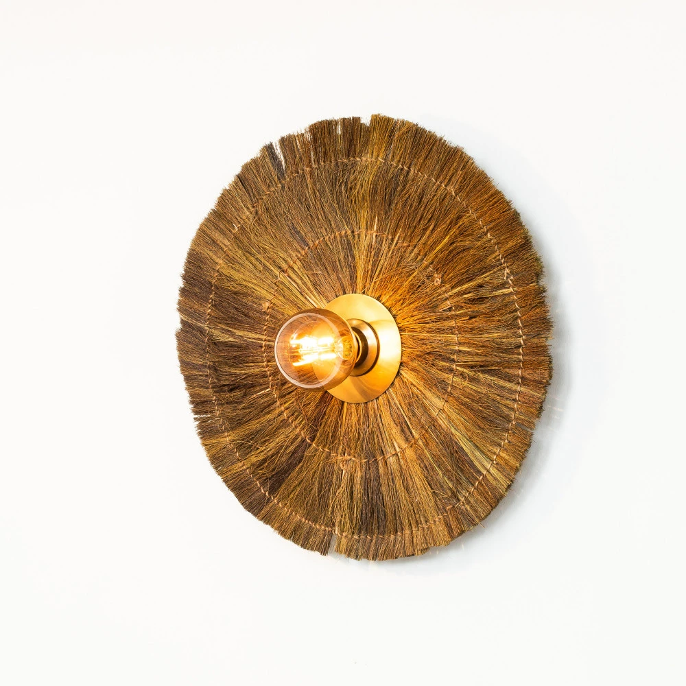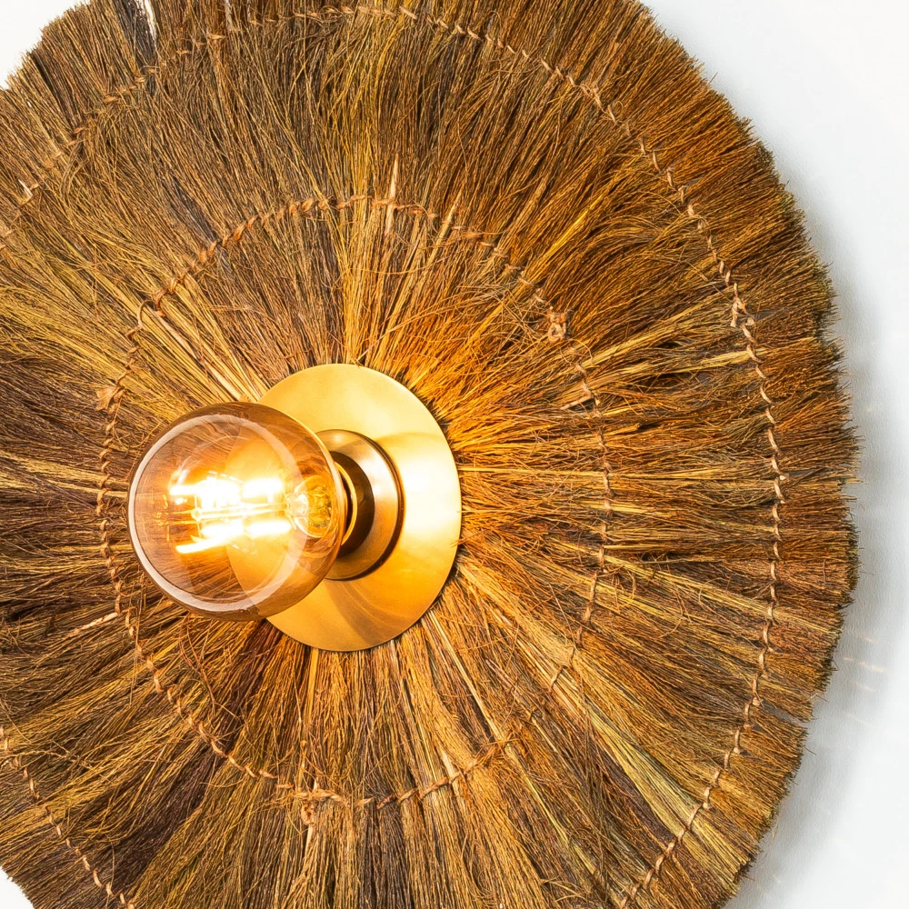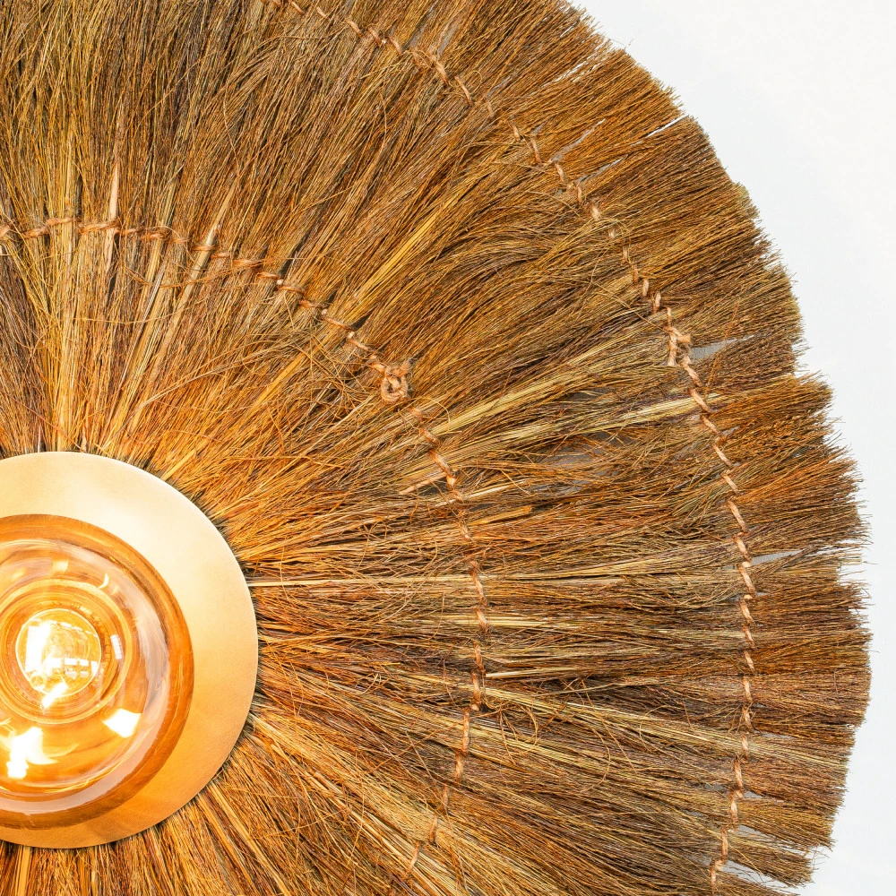 sorgho, une plante herbacée dont vous apprécierez certainement le rendu naturel. Celle-ci se marie à merveille avec la base en laiton présente au centre de l’applique, mais également avec tout type de mobilier ou décoration que vous déciderez de lui associer.Ce design singulier et doux à l’œil lui confère un charme